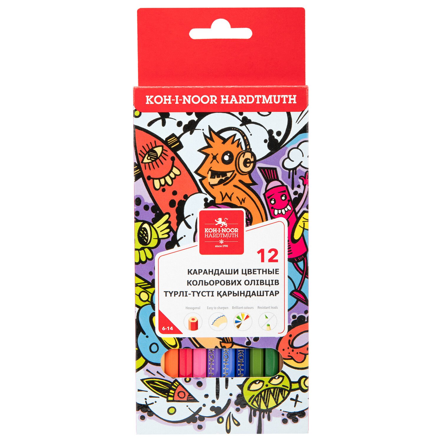 Карандаши цветные KOH-I-NOOR "TEENAGE", 12цв., 3мм, европодвес, 3552/12, 3552012042KSRU