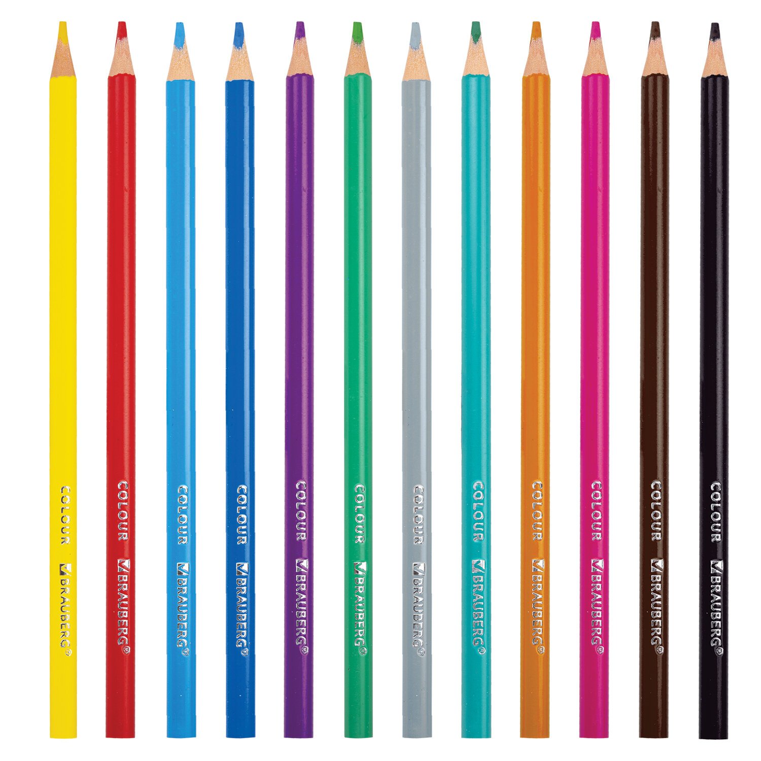 Карандаши цветные BRAUBERG PREMIUM, 12 цветов, трехгранные, грифель 3 мм, 181661