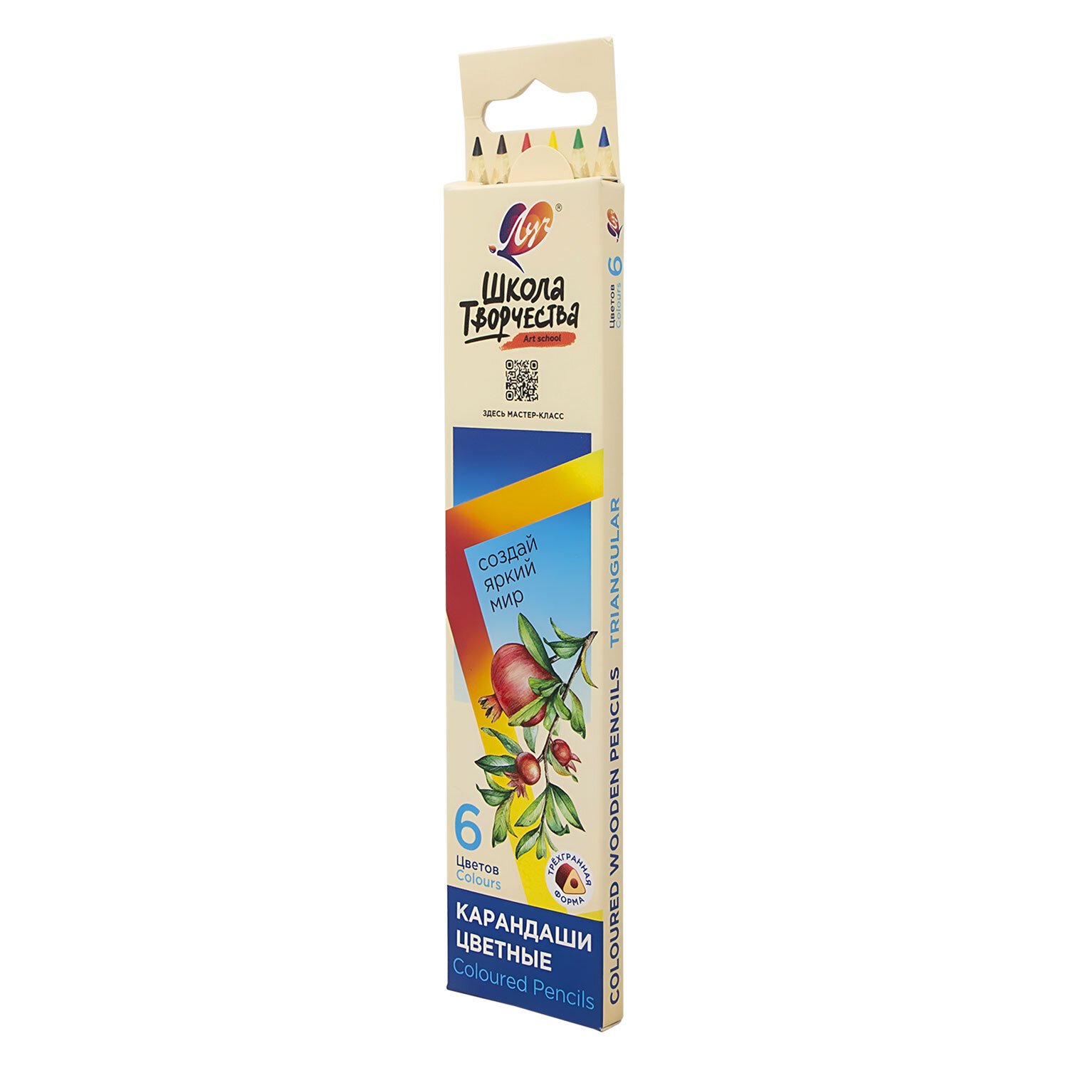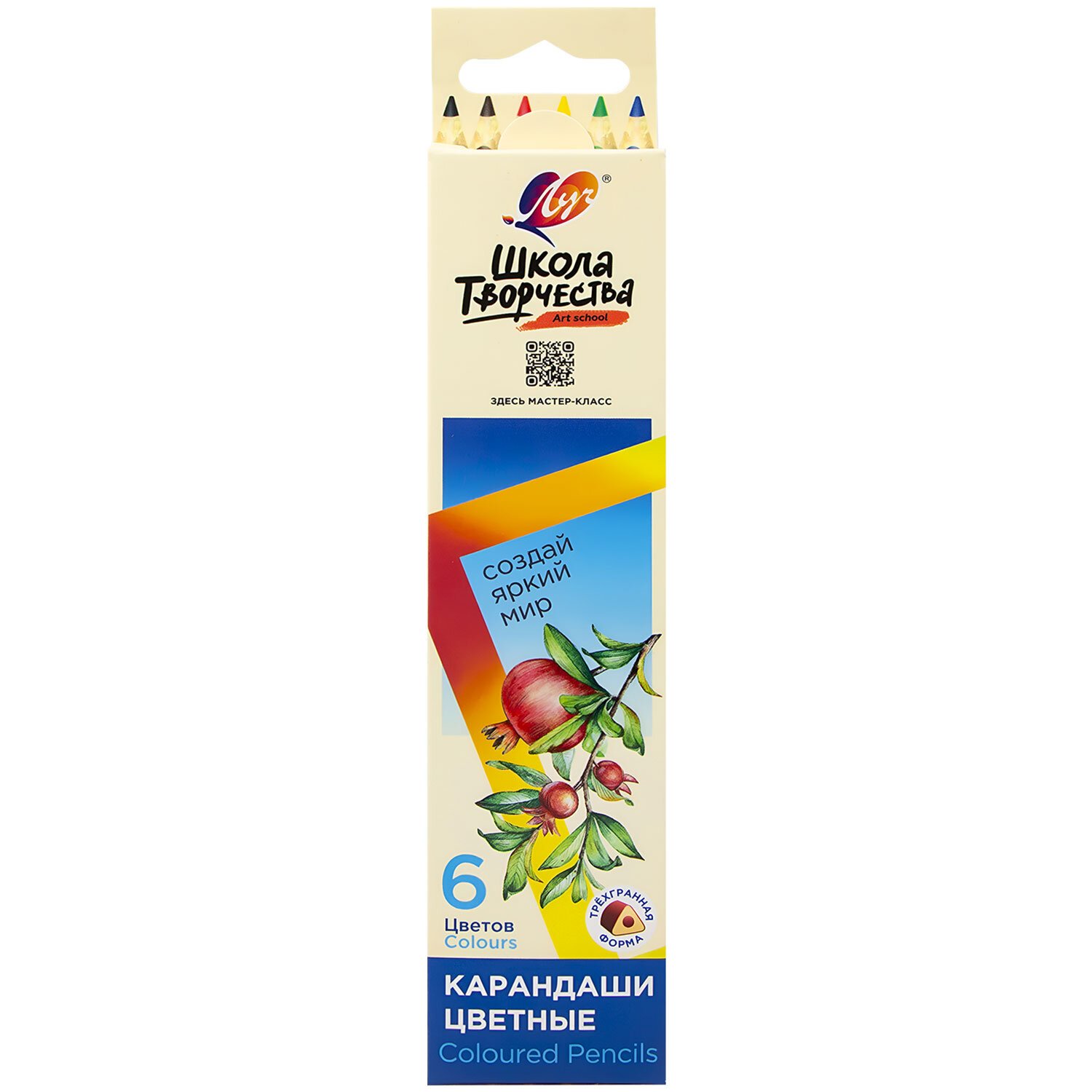 Карандаши цветные ЛУЧ "Школа Творчества", 6 цветов, трехгранные, натуральное дерево, 30С 1805-08