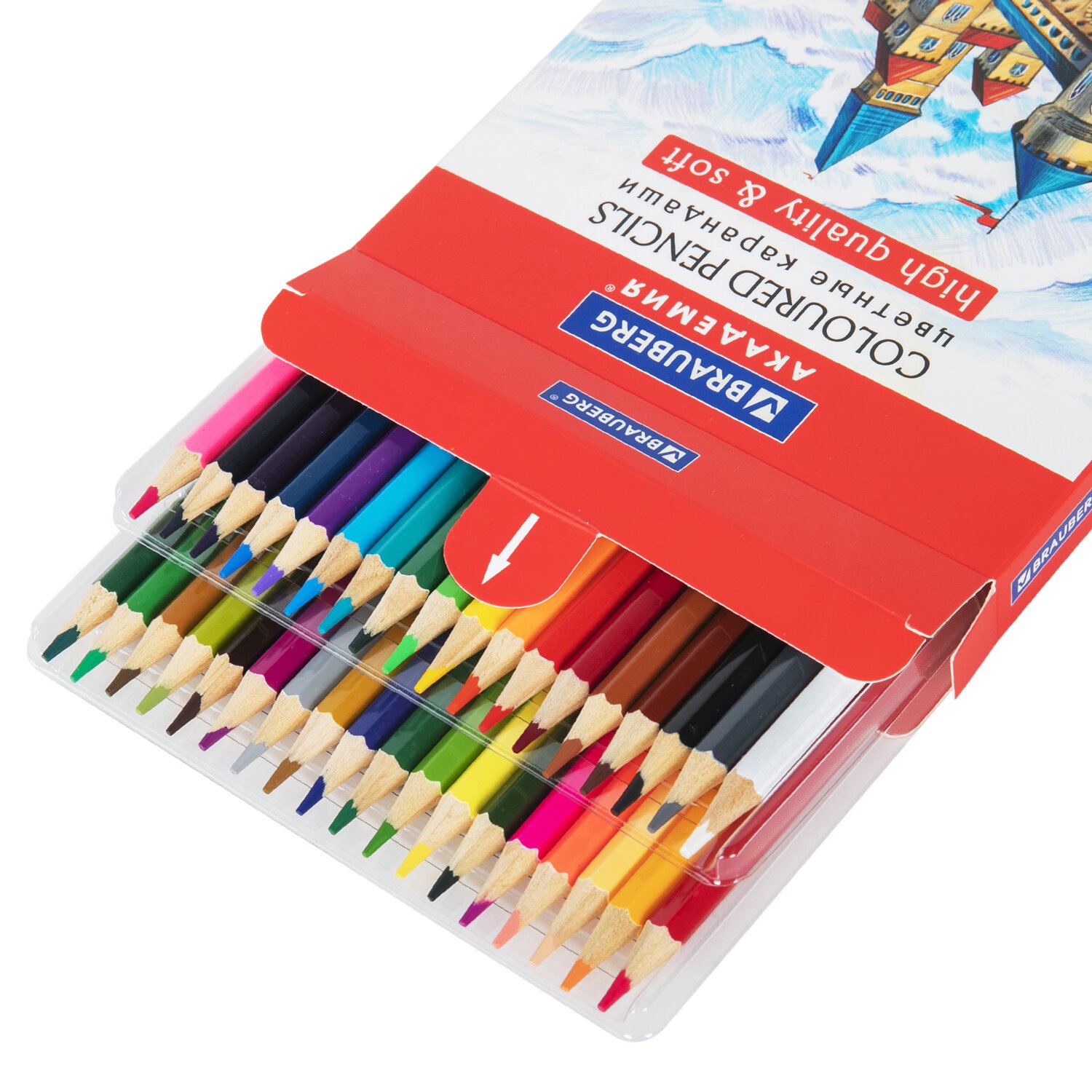 Карандаши цветные мягкие BRAUBERG АКАДЕМИЯ, 36 цветов, шестигранные, грифель 3 мм, натуральное дерево, 181867
