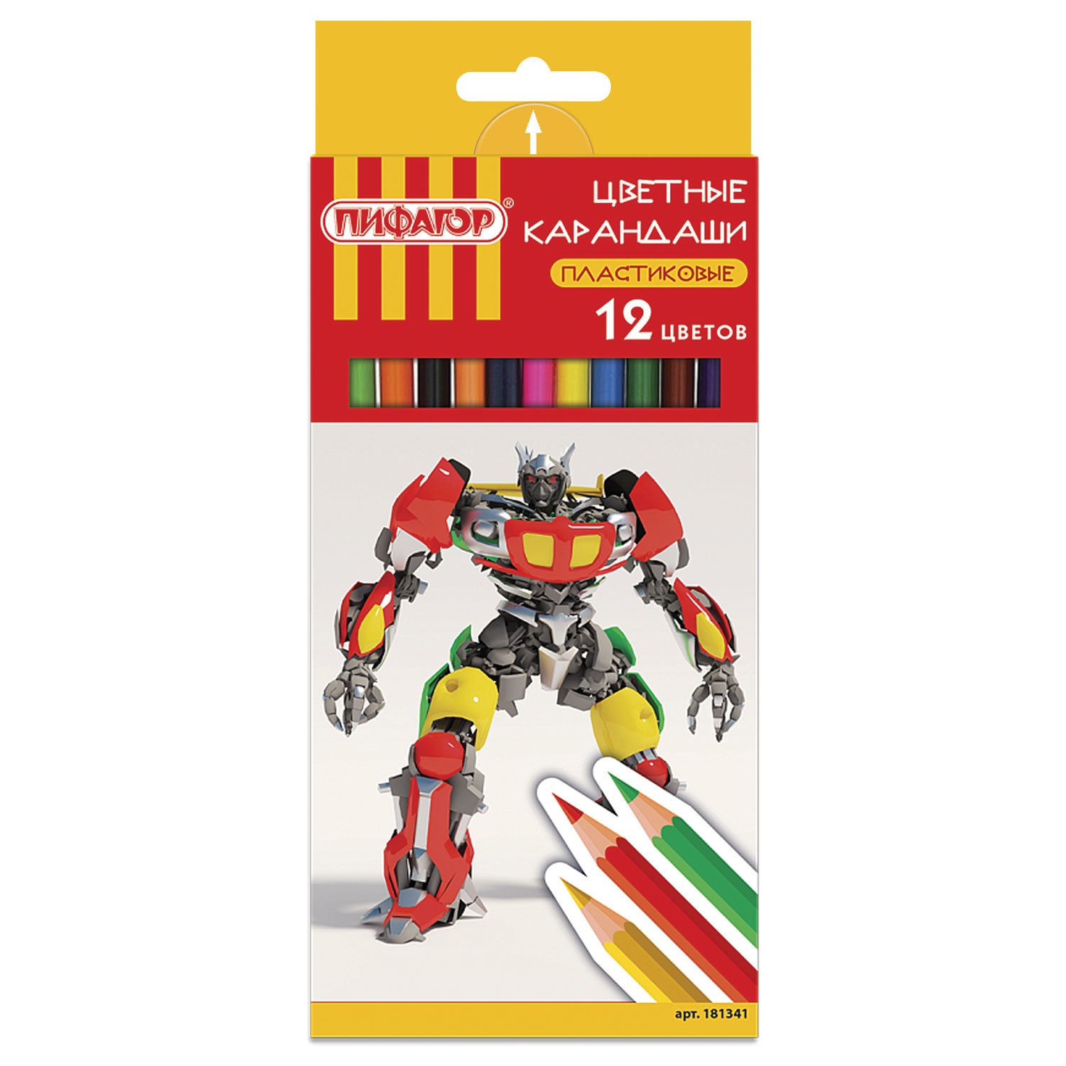 Карандаши цветные ПИФАГОР "БОЕВОЙ РОБОТ", 12 цветов, шестигранные, 181341