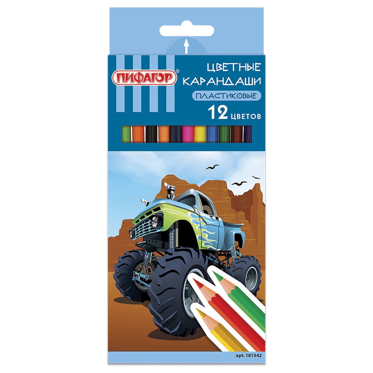 Карандаши цветные ПИФАГОР "ДЖИП", 12 цветов, шестигранные, 181342