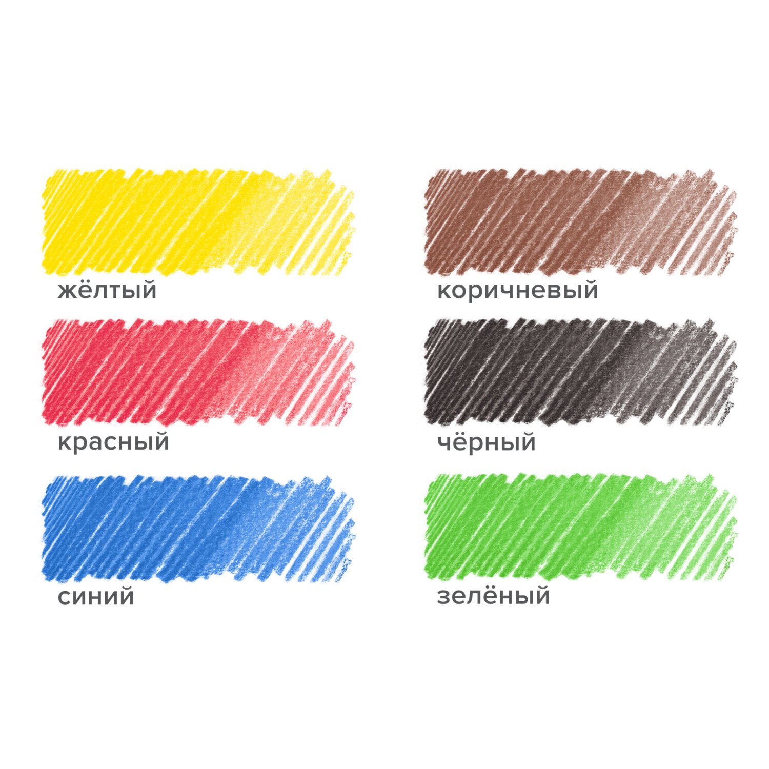 Набор состоит из 6 самых популярных цветов: красный, желтый, зеленый, синий, коричневый, черный. Шестигранная форма сечения корпуса позволяет карандашу не скатываться с поверхности стола во время занятий рисованием. Карандаши изготовлены из нетоксичного переработанного пластика. Корпус при разломе не образует острые края и безопасен для детей. Грифель легко затачивается и обладает повышенной прочностью. Все карандаши заточены и поставляются в картонной упаковке с европодвесом.