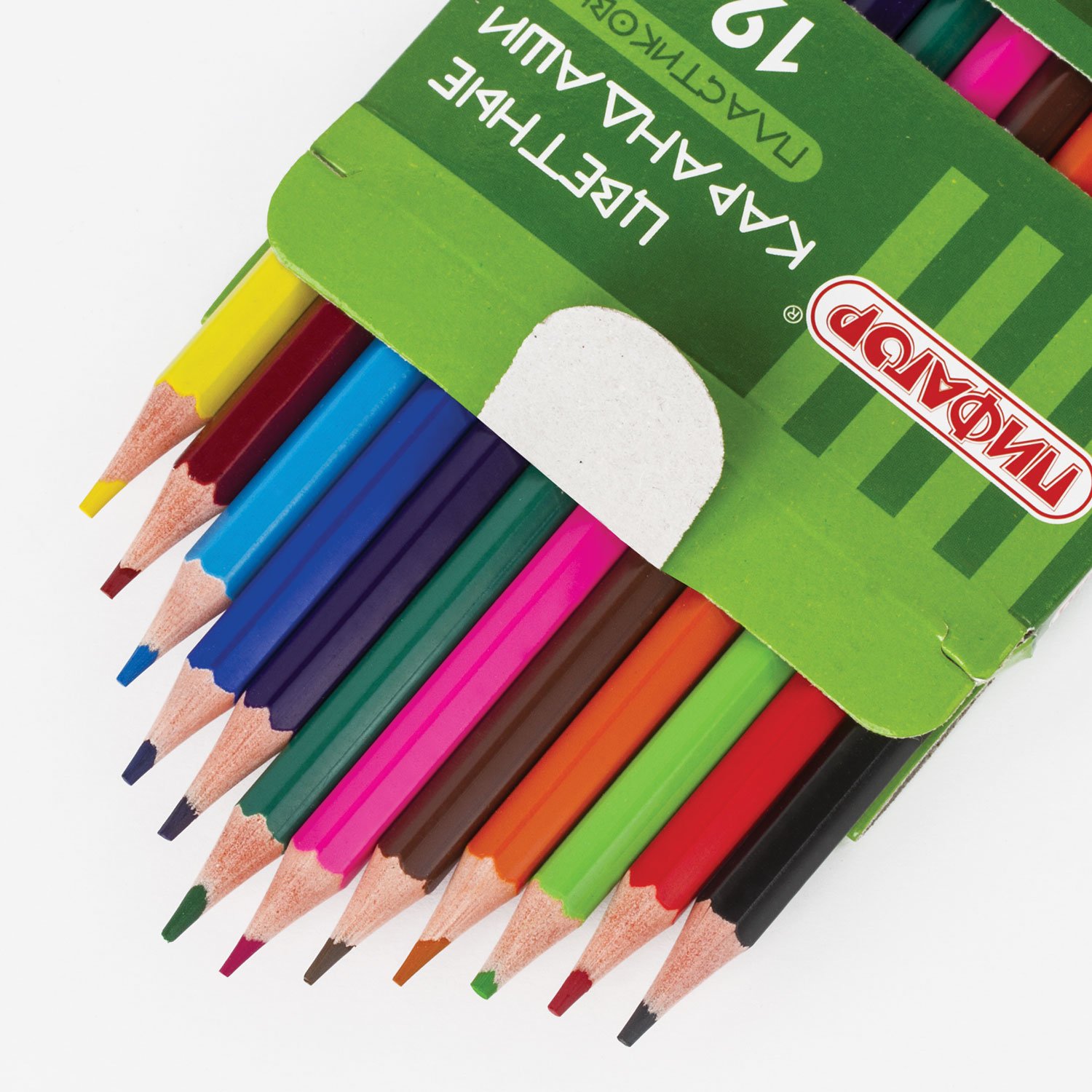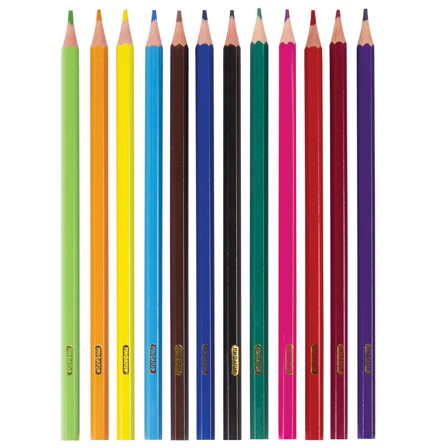 Набор состоит из 12 цветов: розовый, красный, желтый, оранжевый, салатовый, зеленый, голубой, синий, фиолетовый, коричневый, серый, черный. Шестигранная форма сечения корпуса позволяет карандашу не скатываться с поверхности стола во время занятий рисованием. Карандаши изготовлены из пластика и имеют лакированный корпус, который при разломе не образует острые края и безопасен для детей. Легко затачиваются. Грифель диаметром 2,65 мм обладает повышенной прочностью. Все карандаши заточены и поставляются в картонной упаковке с европодвесом.