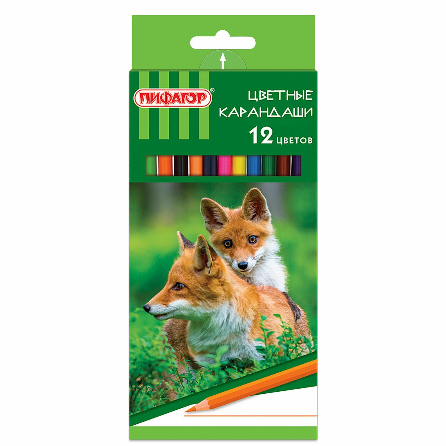 Карандаши цветные ПИФАГОР "ЛЕСНЫЕ ЖИТЕЛИ", 12 цветов, шестигранные, 181334