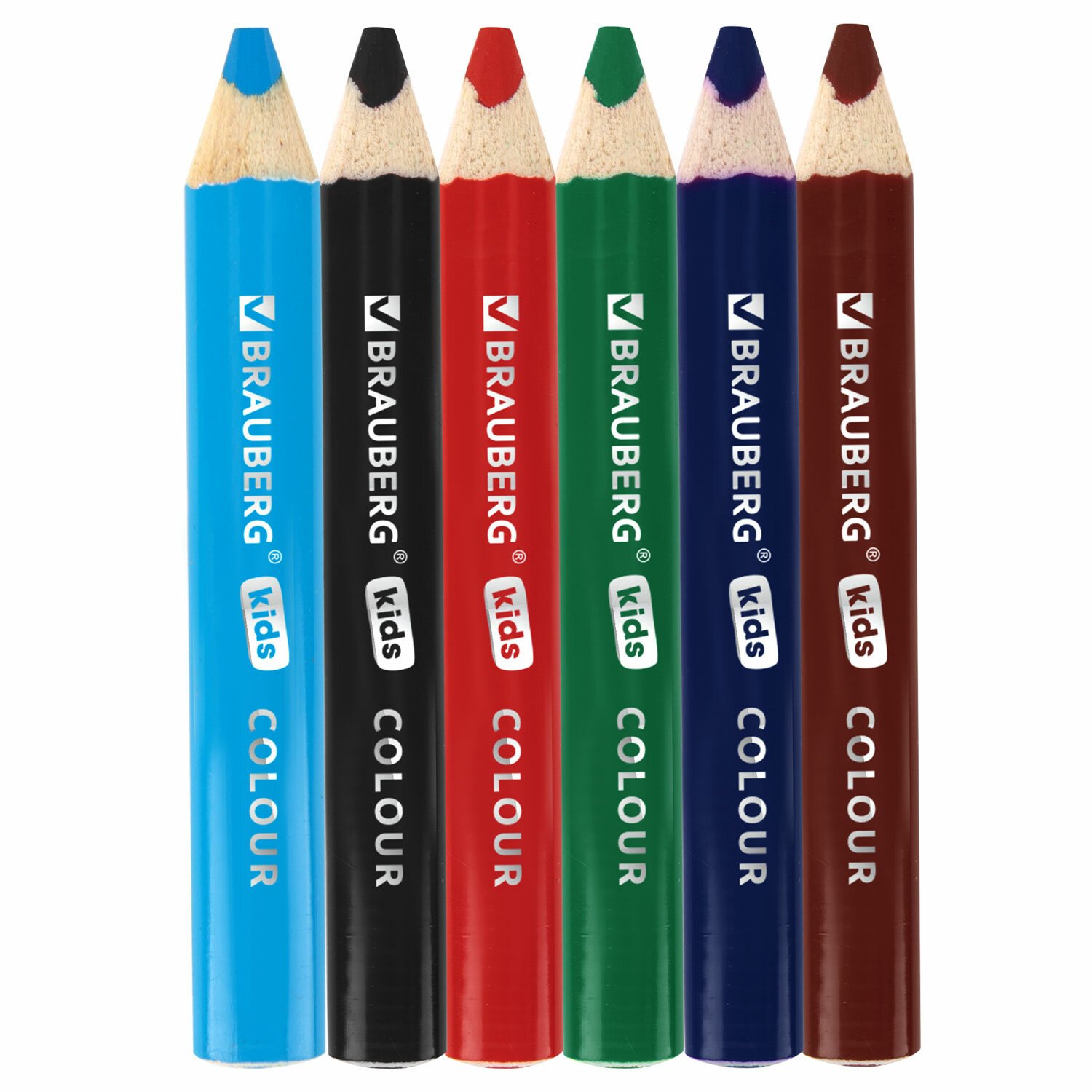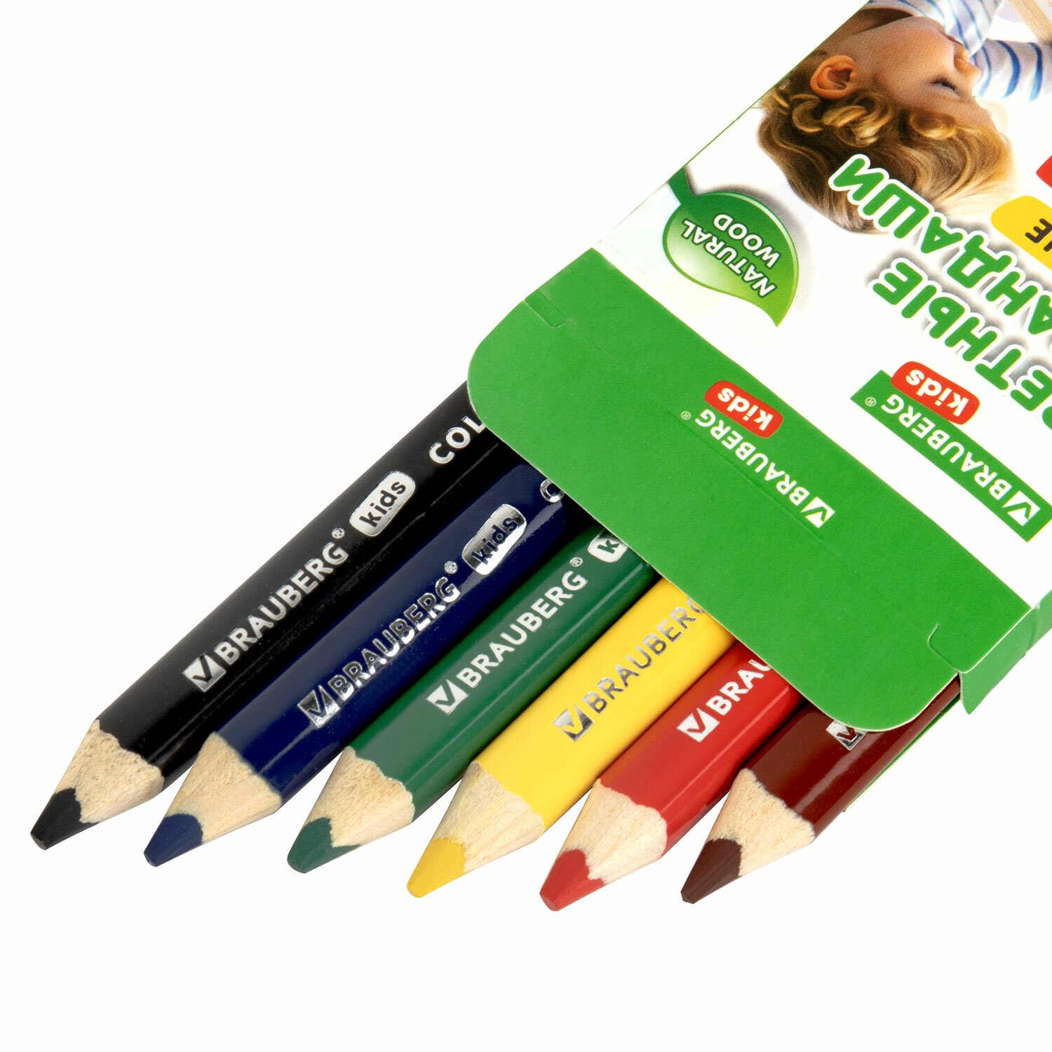 Карандаши цветные толстые для малышей 6 цветов, трехгранные, натуральное дерево, BRAUBERG KIDS, 182057