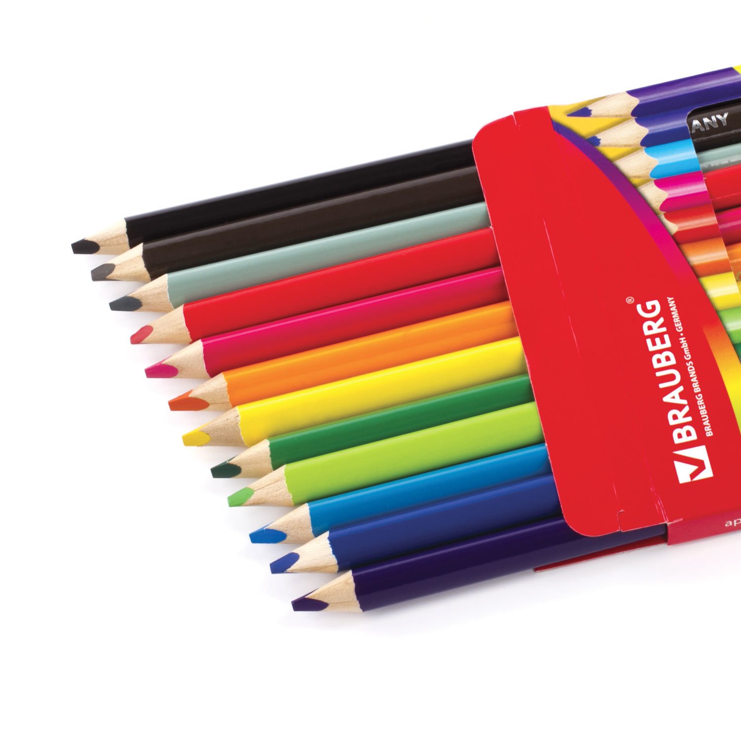 Утолщенные цветные карандаши BRAUBERG предназначены для детского и художественного творчества, а красочная коробка с оригинальным дизайном придется по душе и детям, и взрослым.