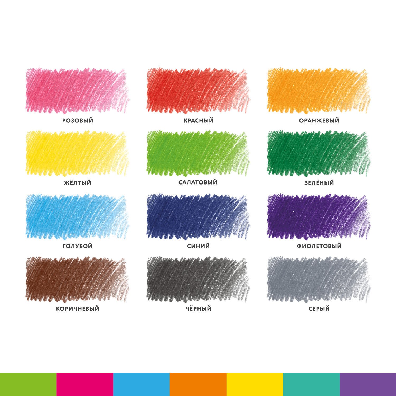 Восковые мелки ПИФАГОР "СОЛНЫШКО", НАБОР 12 цветов, 227279