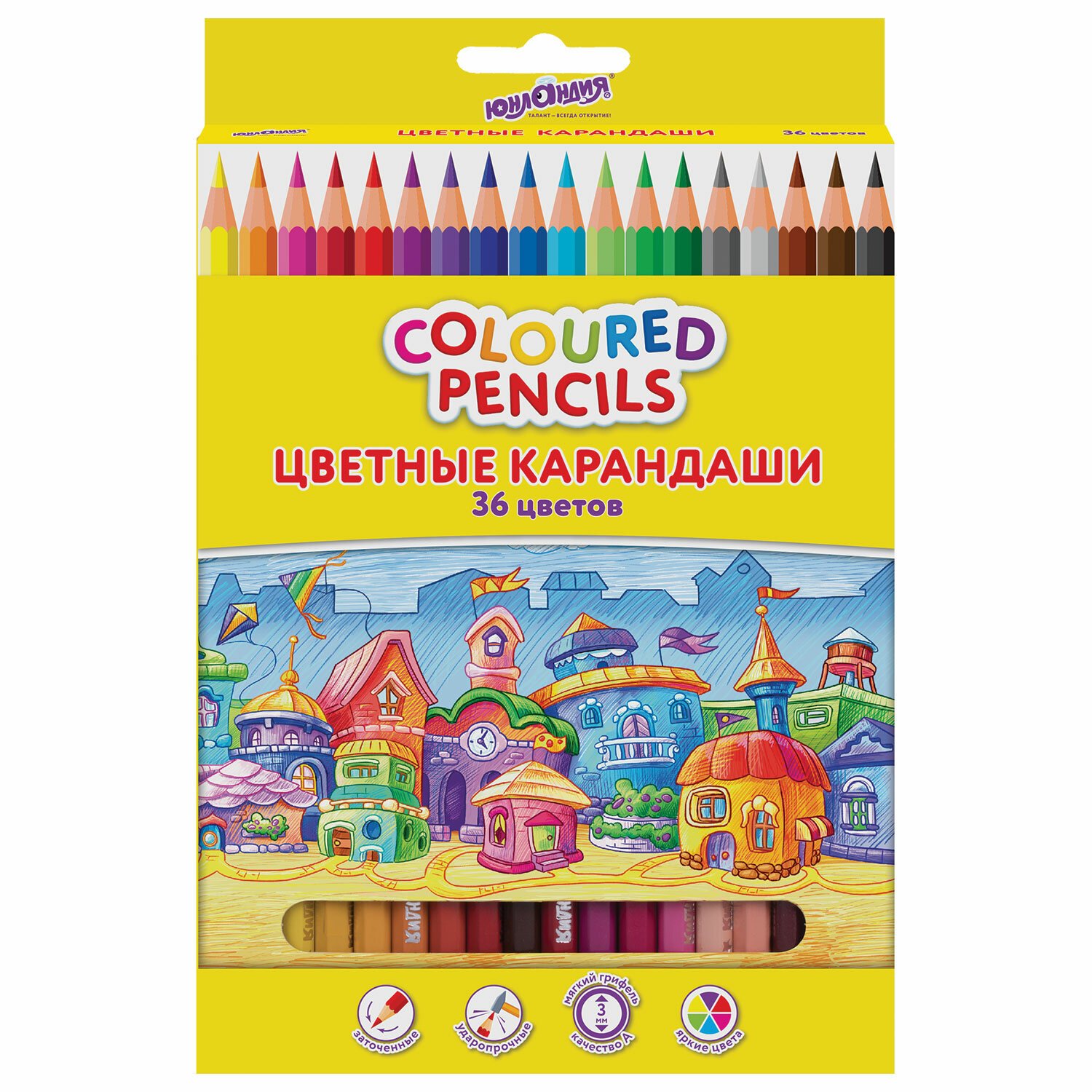 Карандаши цветные ЮНЛАНДИЯ "ДОМИКИ", 36 цветов, шестигранные, грифель 3 мм, 181839