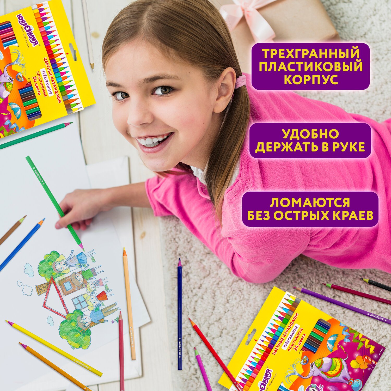 Карандаши цветные ЮНЛАНДИЯ "КАРНАВАЛ", 24 цвета, трехгранные, грифель 3 мм, 181686