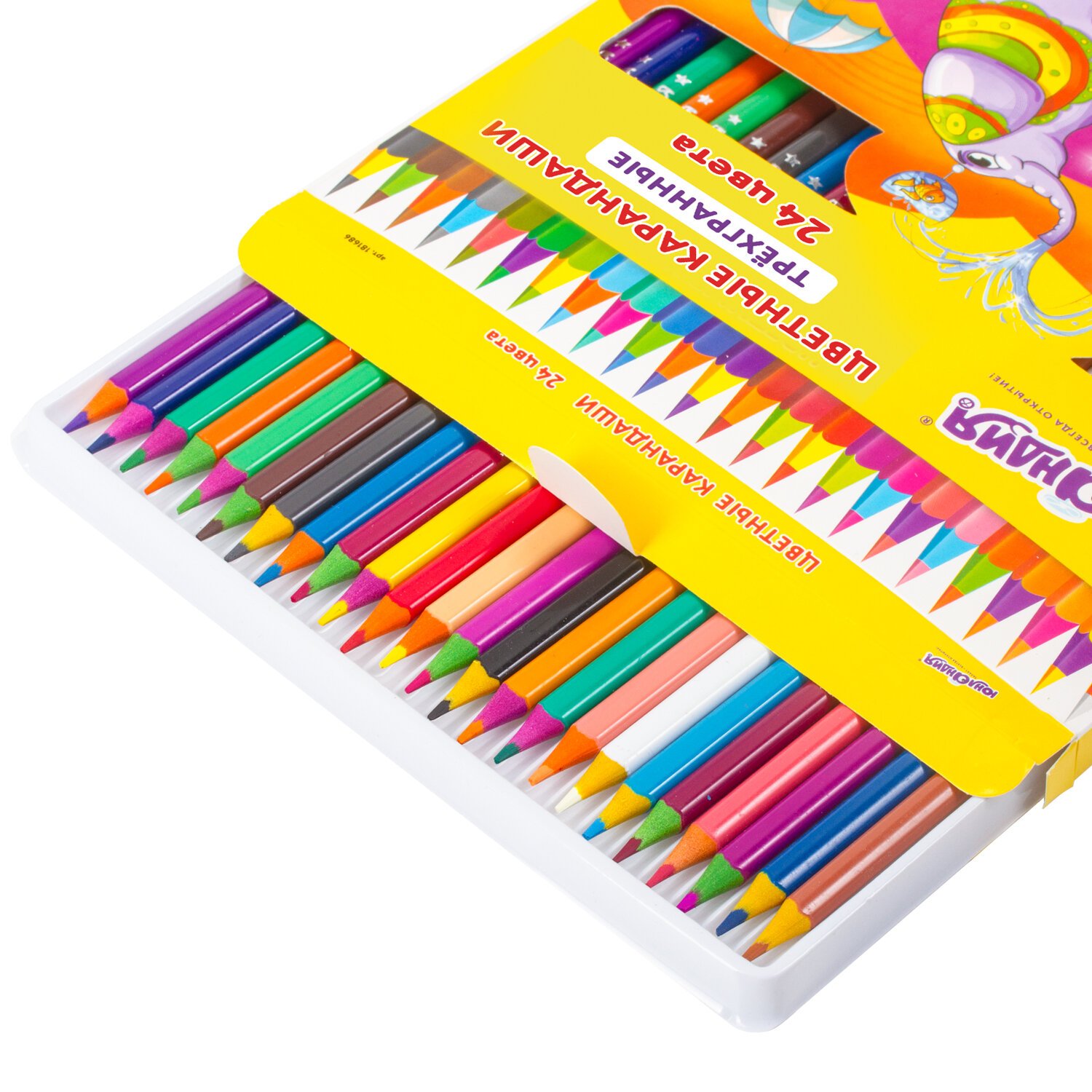 Карандаши цветные ГАММА "Мультики", 24 цвета, трехгранные, натуральное дерево, 290122_24