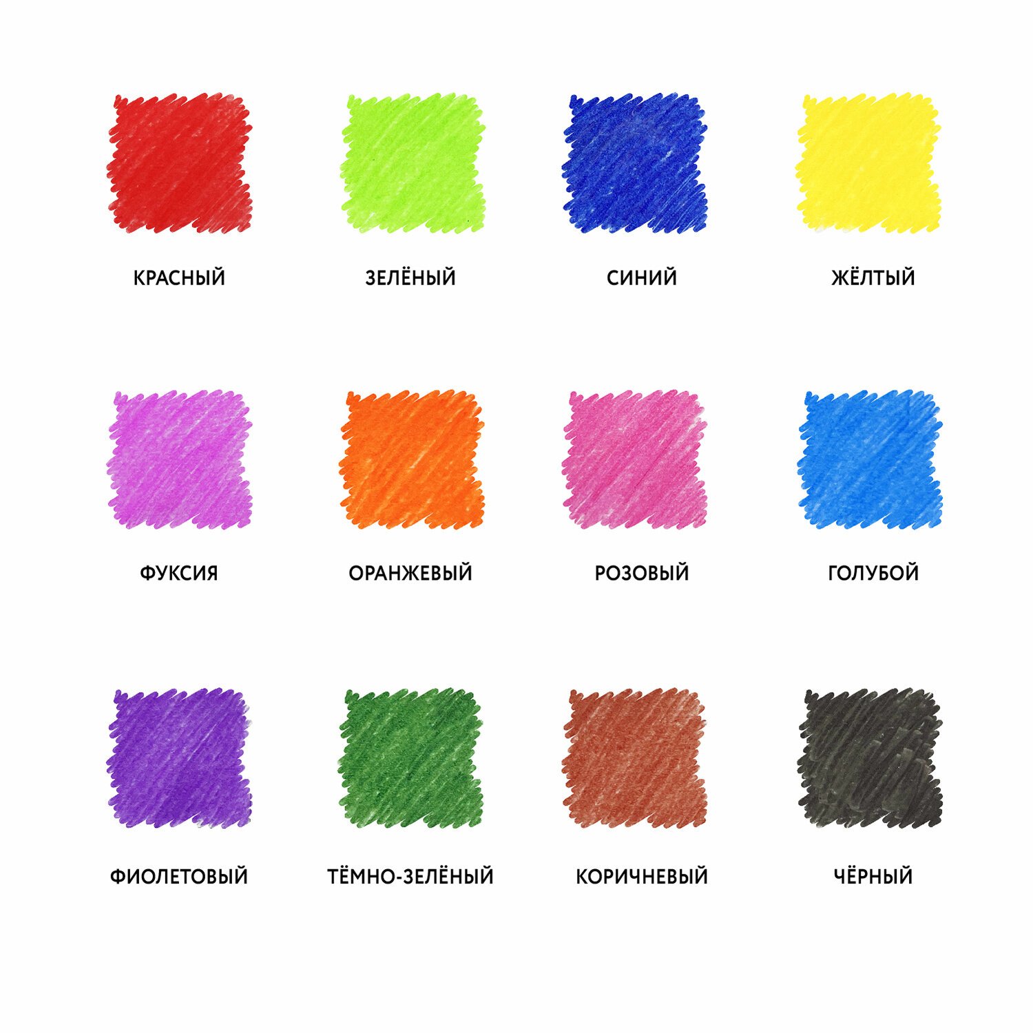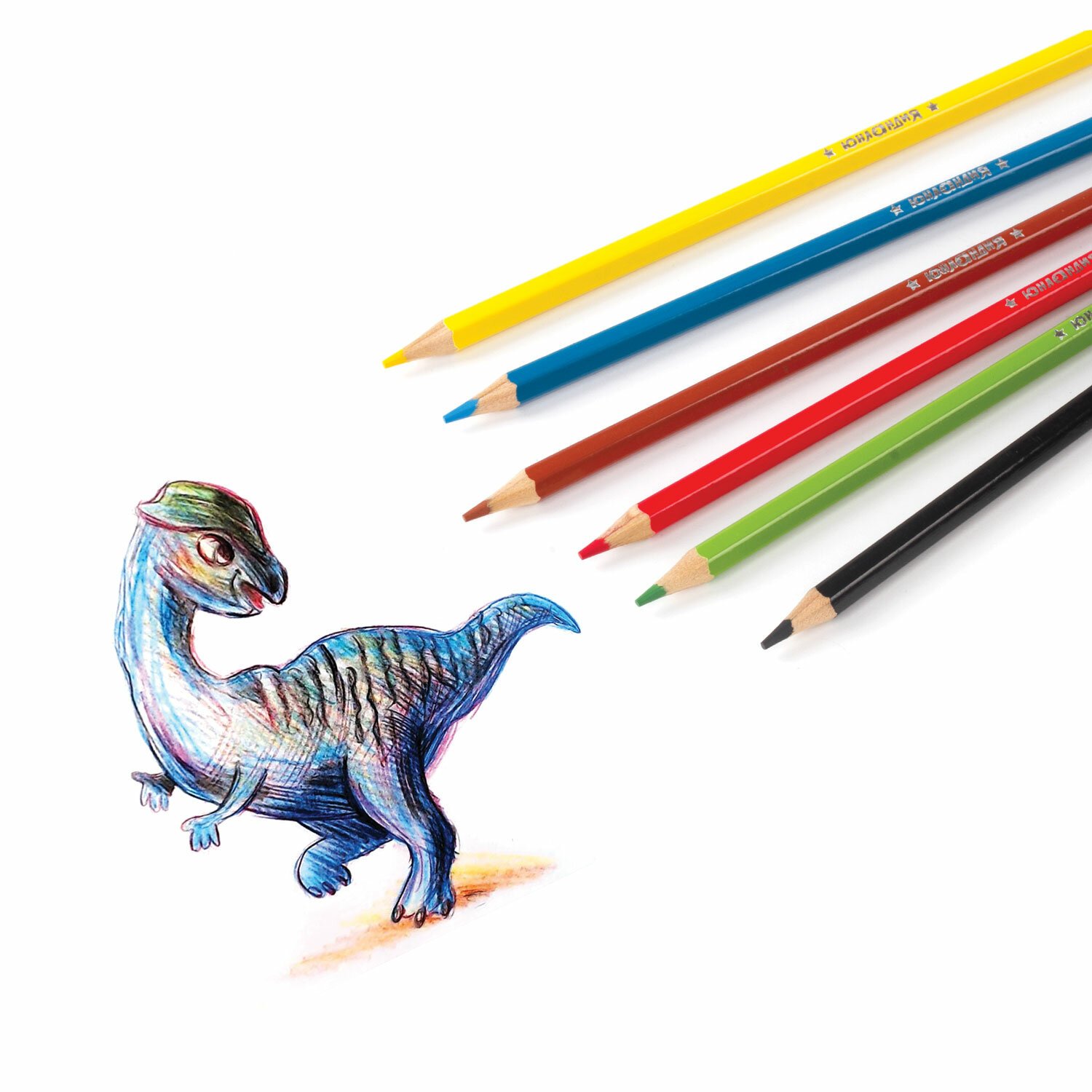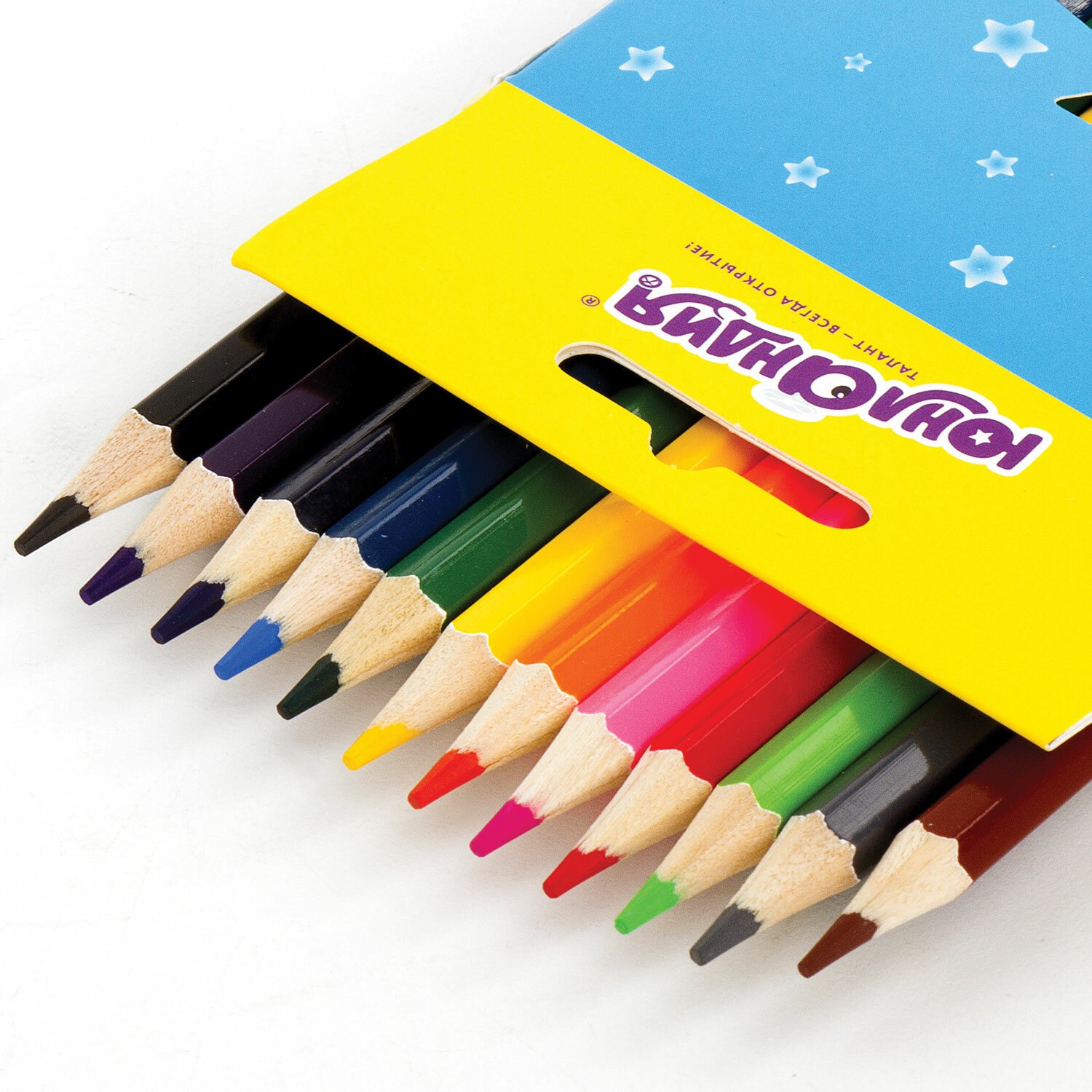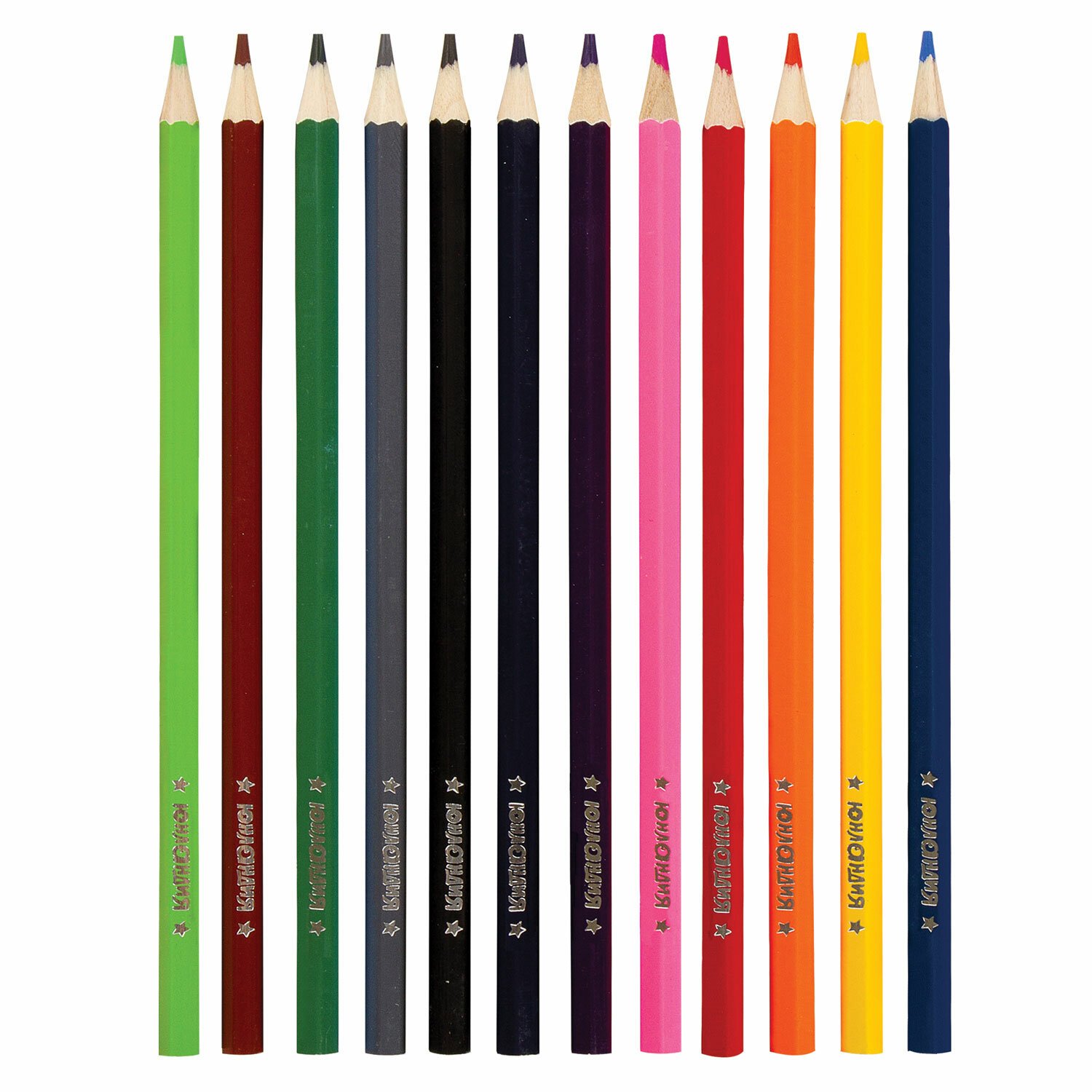 Набор состоит из 12 цветов: черный, голубой, зеленый, желтый, коричневый, красный, розовый, синий, фуксия, оранжевый, фиолетовый, темно-зеленый. Яркие цвета развивают цветовосприятие ребенка. Шестигранная форма сечения корпуса позволяет не скатываться карандашам с поверхности стола во время занятий рисованием. Они изготовлены из древесины ценных пород и имеют лакированный корпус. Высокосортная древесина и качество исполнения гарантируют легкую заточку. Мягкий грифель качества "А" с диаметром 3 мм обладает повышенной прочностью, не ломается и не крошится при заточке. Все карандаши заточены и поставляются в картонной упаковке с европодвесом.