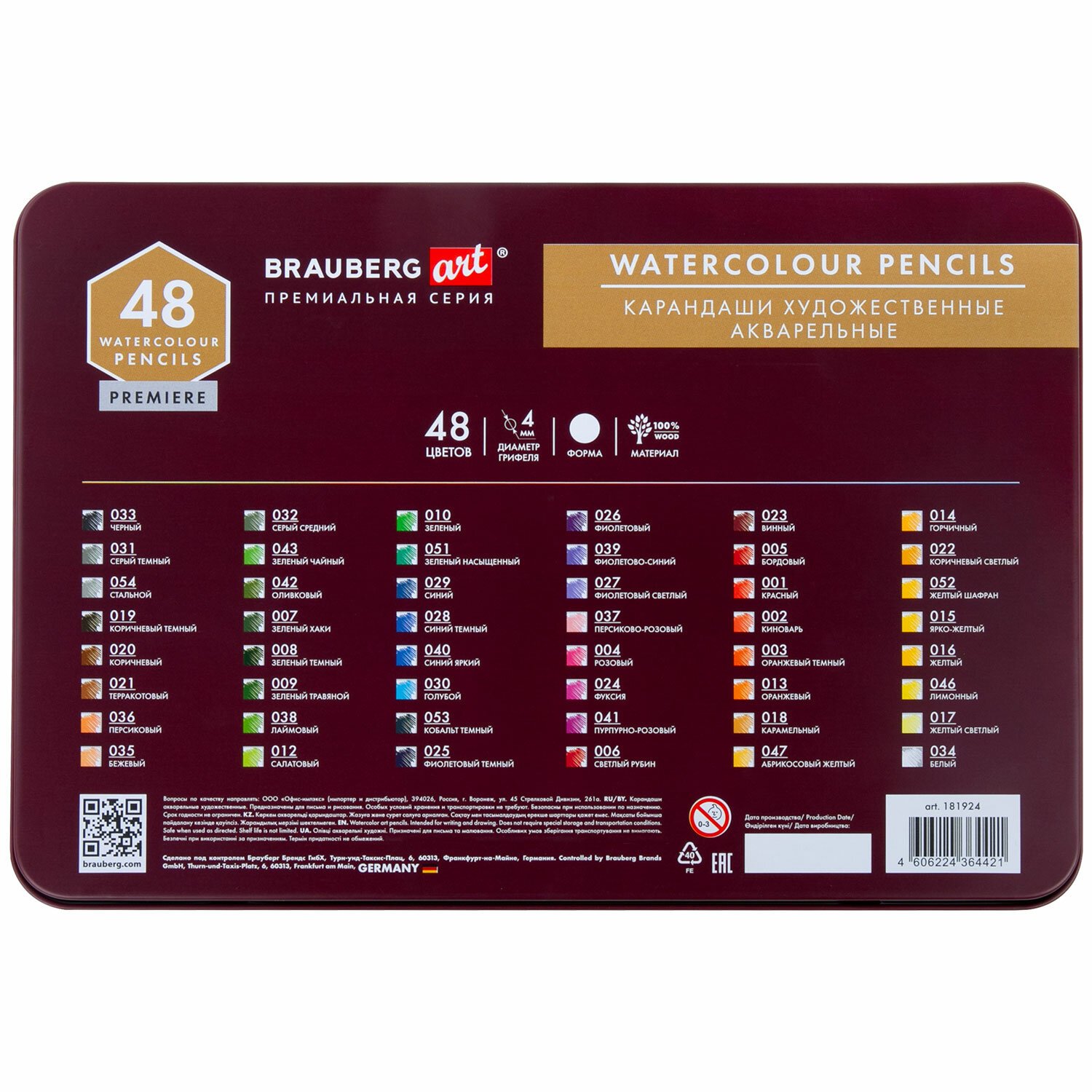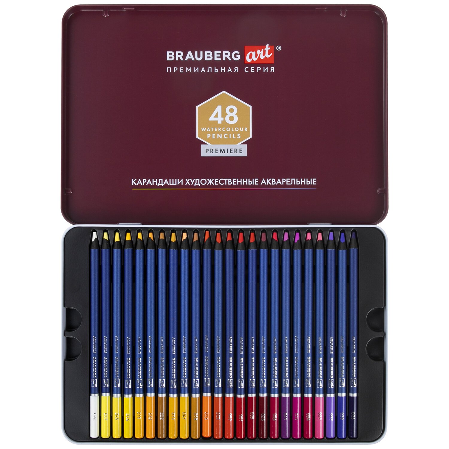 Карандаши художественные цветные акварельные, 48 цветов, 4 мм, металлический кейс, BRAUBERG ART PREMIERE, 181924