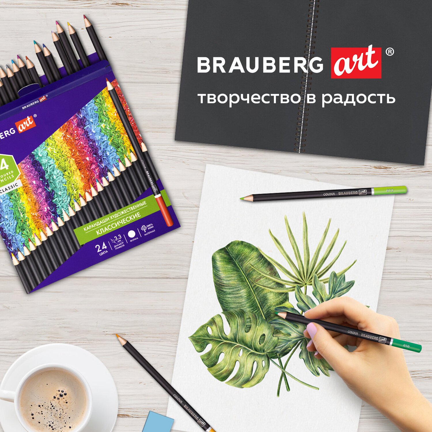 Карандаши художественные цветные BRAUBERG ART CLASSIC, 24 цвета, МЯГКИЙ грифель 3,3 мм, 181537