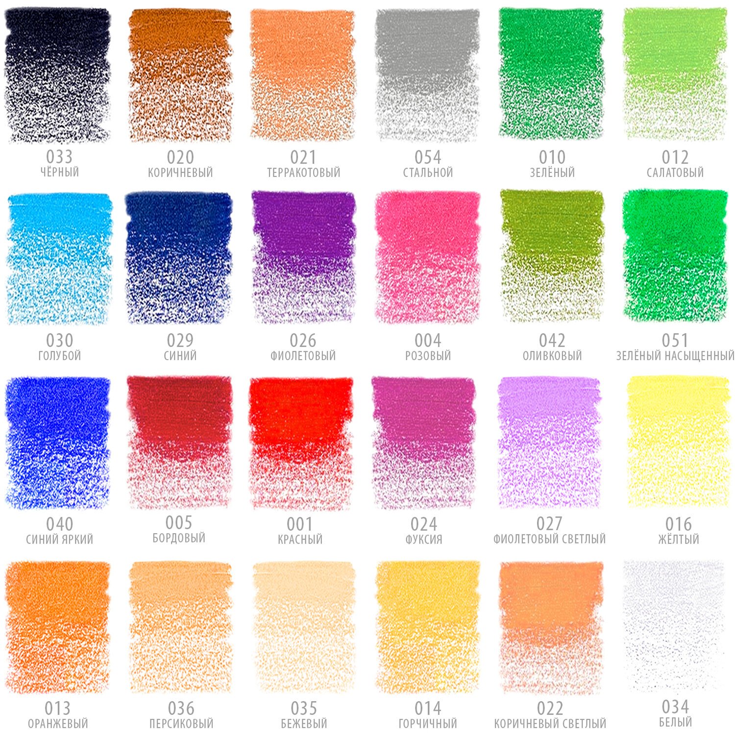 Набор состоит из 24 цветов. Круглая форма сечения и матовый корпус позволяют удобно держать карандаш в руке. Они изготовлены из древесины ценных пород. Высокосортная древесина и качество исполнения гарантируют легкую заточку. Благодаря высококачественному грифелю диаметром 3,3 мм рисунок ляжет на бумагу густо сплошной четкой линией. Все карандаши заточены и поставляются в картонной упаковке с европодвесом.