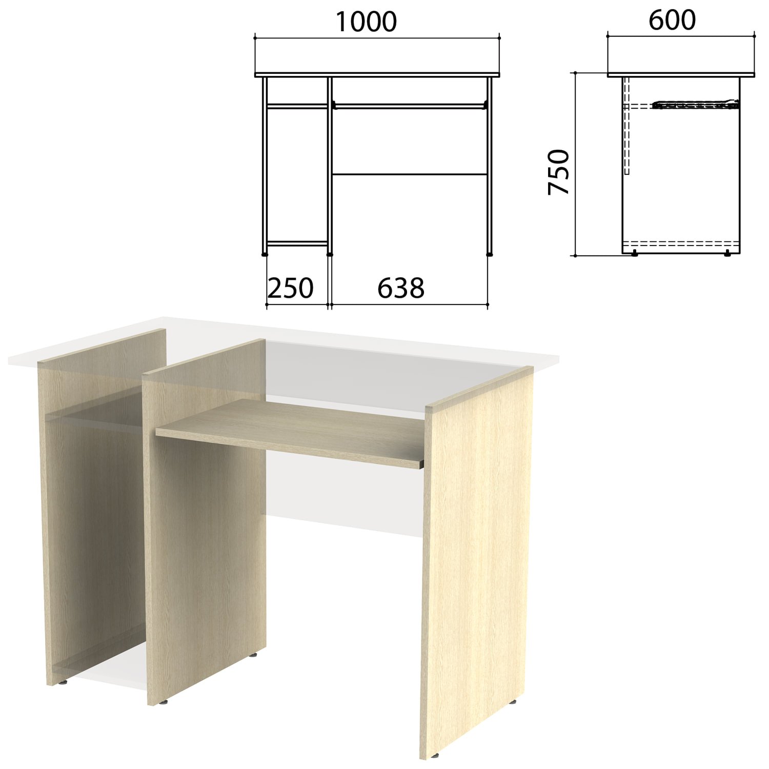 Стол компьютерный "Канц", 1000х600х750 мм, с тумбой, цвет дуб молочный (КОМПЛЕКТ)