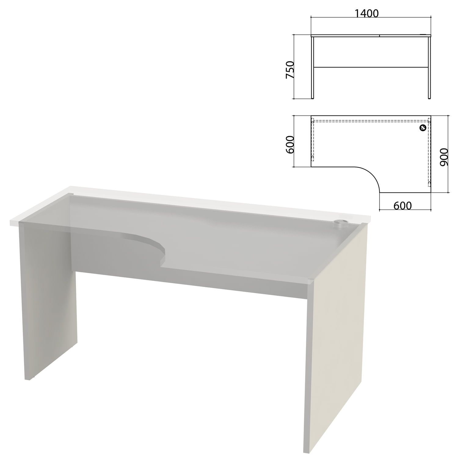 Каркас стола эргономичного "Этюд", 1400х900х750 мм, правый, серый, 401669-03