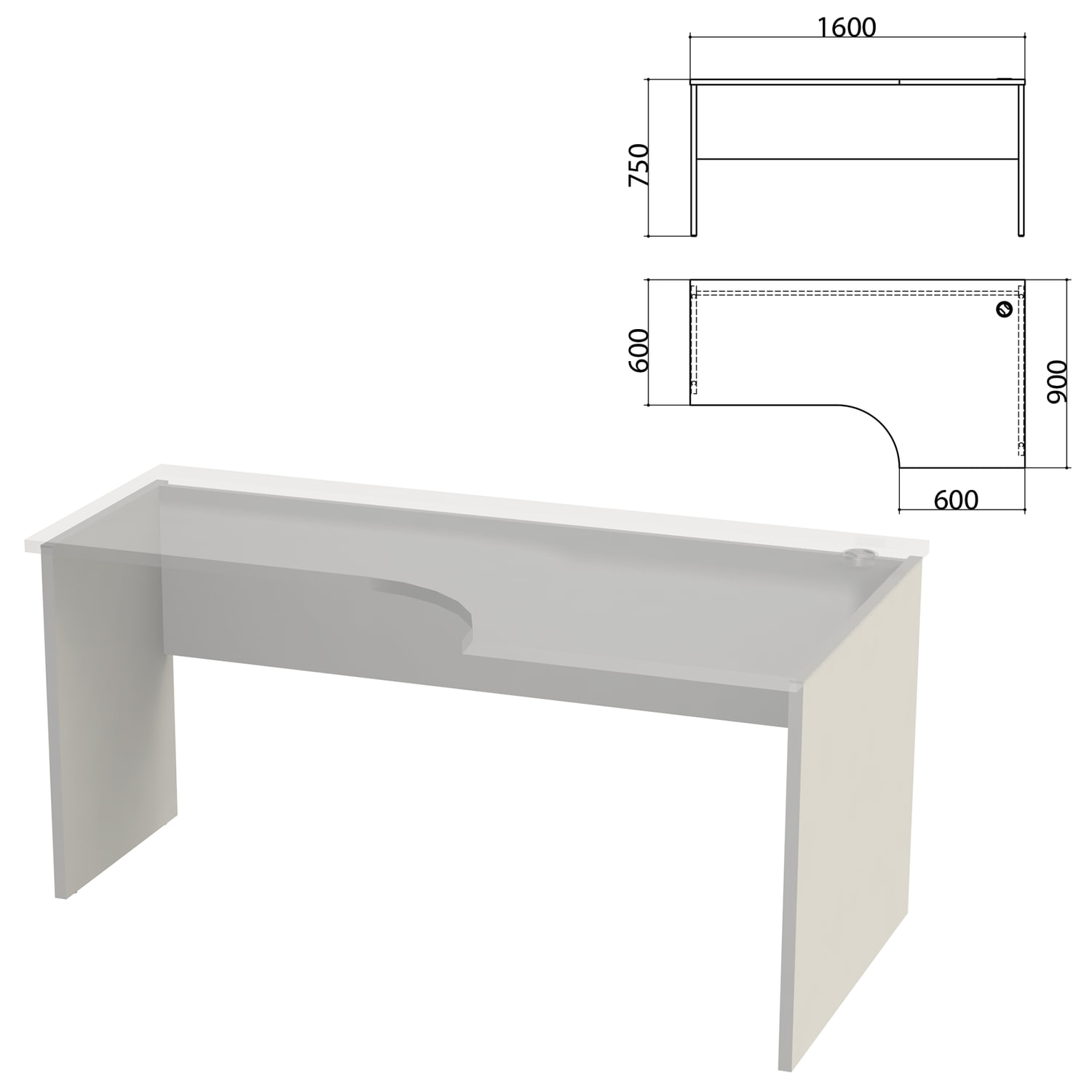 Каркас стола эргономичного "Этюд", 1600х900х750 мм, правый, серый, 401673-03