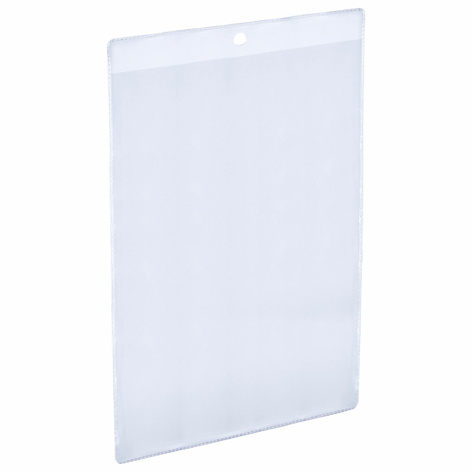 Карман имеет круглое отверстие для подвешивания ценника при помощи нейлоновых хомутов или веревочных биркодержателей. Предусматривает двустороннее размещение с верхней стороны. Формат – А5. Материал изготовления – мягкий ПВХ. Размер одного кармана – 15,4х21,7х0,1 см. Единица продажи – 50 шт., упакованы в пакет с липким краем.
