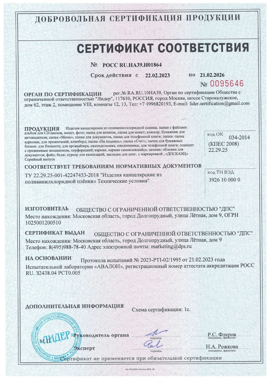 | Тип упаковки | пакет с европодвесом |