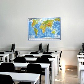 Настенная физическая карта мира с масштабом 1:25 000 000 обладает размером 120х78 см. Выполнена из ламинированной бумаги плотностью 170 г/м2. Поставляется в упаковке с европодвесом.