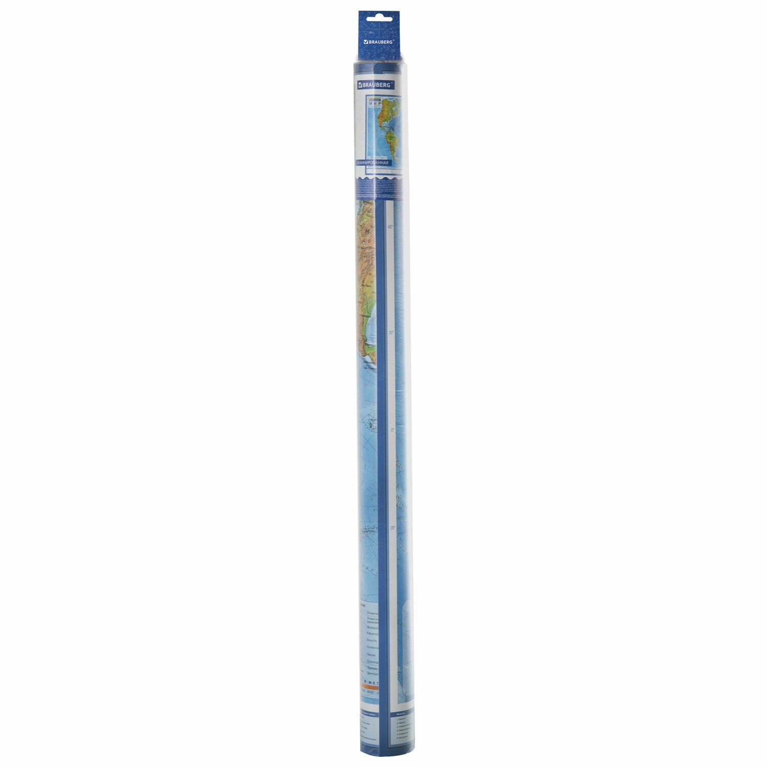 Карта мира физическая 157х107 см, 1:21,5М, с ламинацией, интерактивная, в тубусе, BRAUBERG, 112388