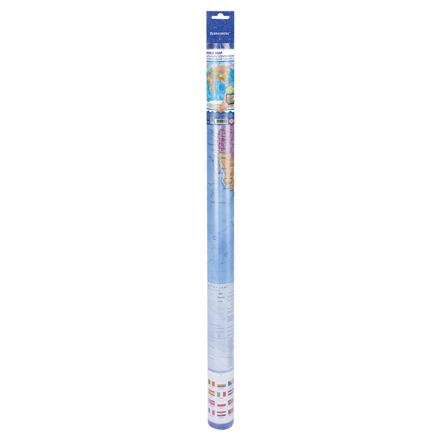 Карта мира политическая 157х107 см, 1:21,5М, с ламинацией, интерактивная, в тубусе, BRAUBERG, 112390