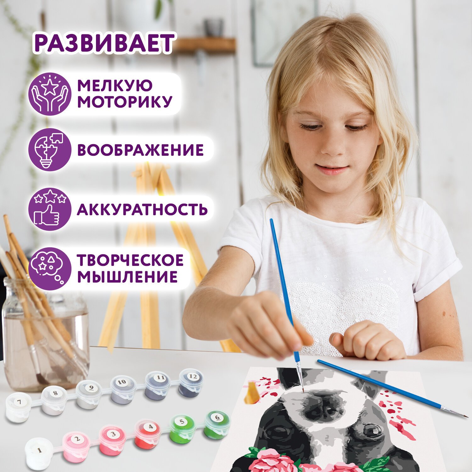Картина по номерам ЮНЛАНДИЯ – это отличный способ почувствовать себя художником и интересно провести время. Работа над картиной развивает внимательность, усидчивость, аккуратность.