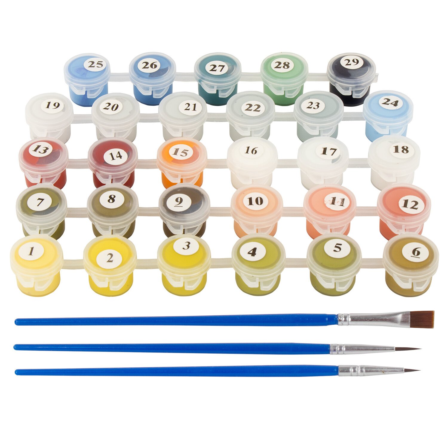 Краски укрывистые, быстро сохнут без потери цвета. Каждый цвет в наборе подходит под конкретный номер, благодаря чему нет необходимости смешивать краски. Однако, если Вы хотите добиться нового оттенка, наши краски с легкостью позволят это сделать благодаря отличной смешиваемости.
