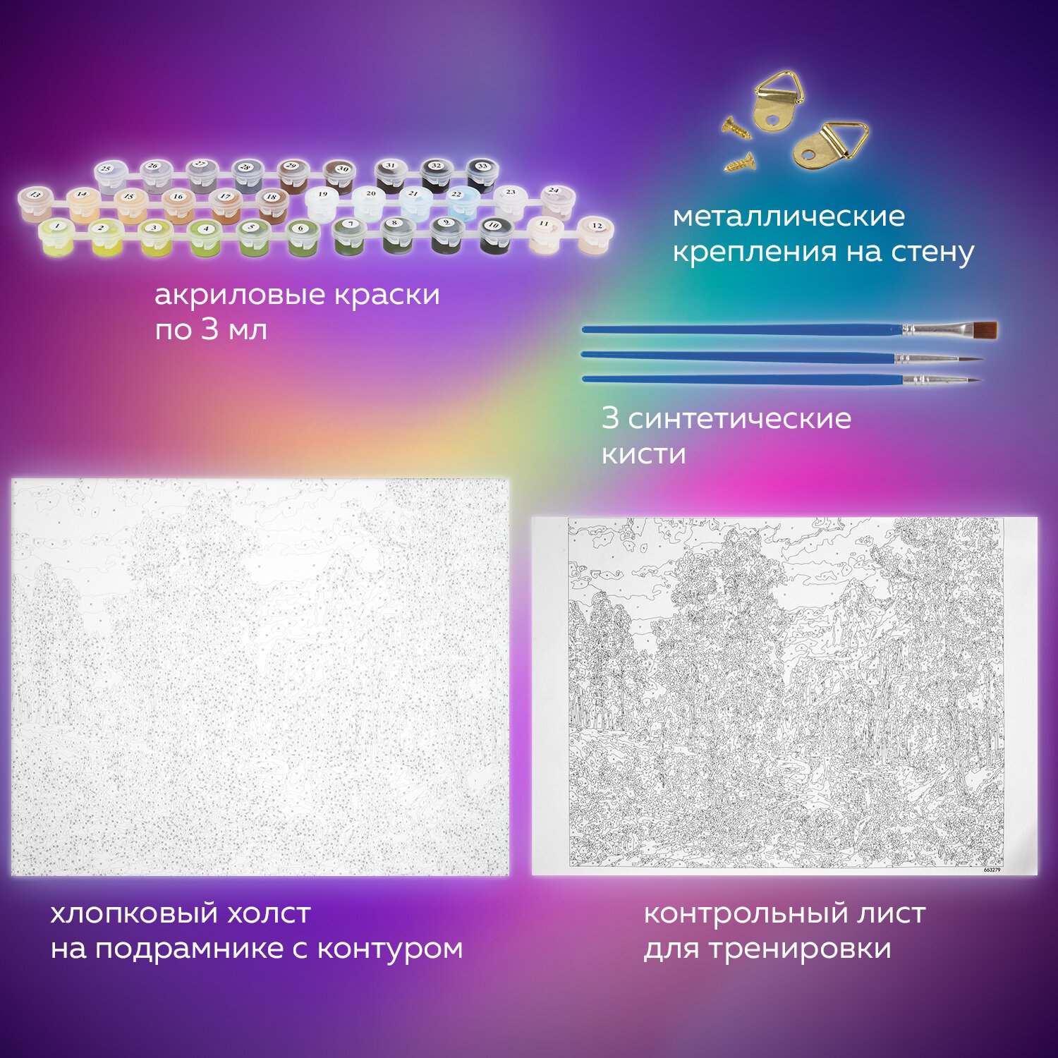 Картины по номерам на холсте с подрамником размером 40х50 см с дизайнами по картинам российских художников – это отличный способ почувствовать себя художником и интересно провести время. Все необходимое для рисования – в наборе.