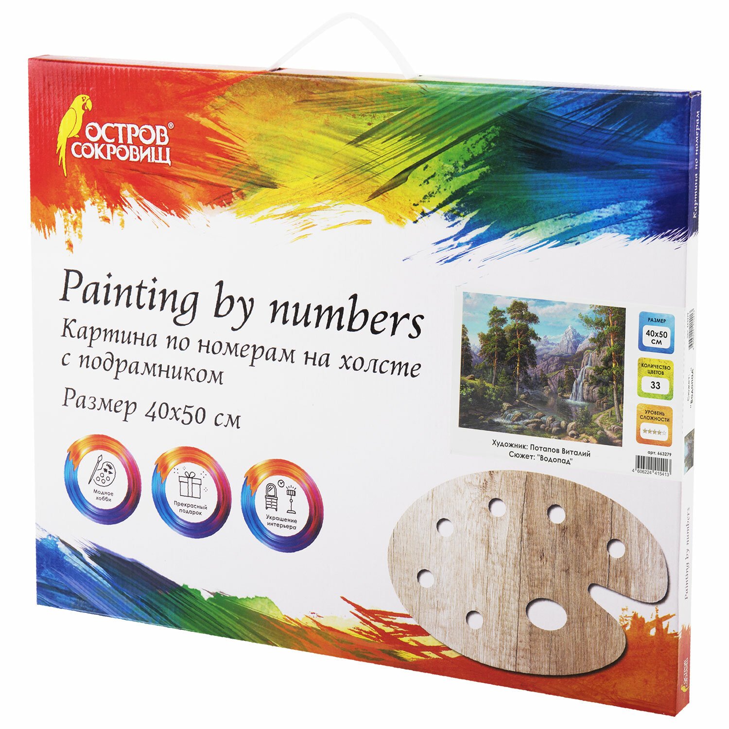 Картина по номерам 40х50 см, ОСТРОВ СОКРОВИЩ "Водопад", на подрамнике, акрил, кисти, 663279