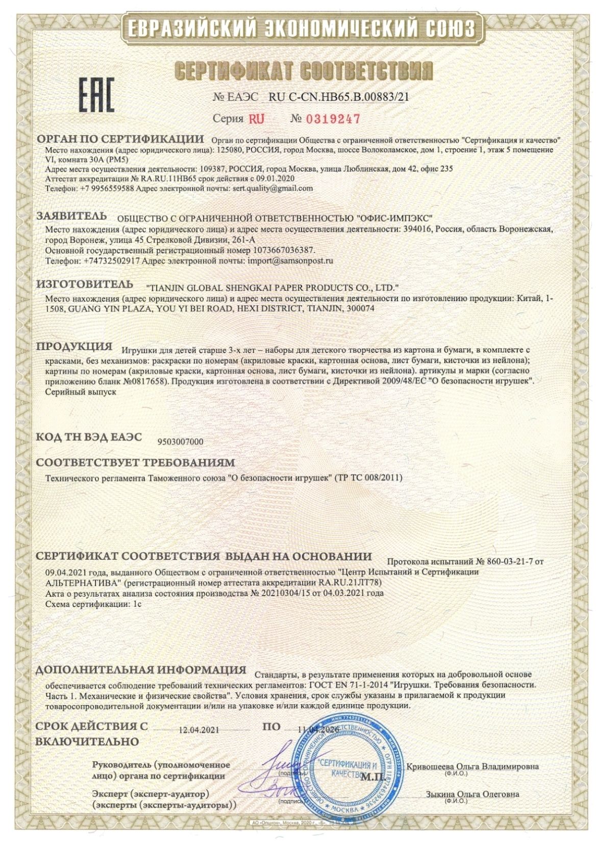 В набор входит: 1 картонная основа с контуром, 1 лист бумаги для тренировки, 10 акриловых красок объемом 3 мл каждая и синтетическая кисть. Формат основы - А3 (395х290 см). Дополнительно понадобятся: палитра для смешивания красок, емкость с водой для мытья кисти, салфетка для удаления воды с кисти (В КОМПЛЕКТ НЕ ВХОДЯТ). Подходит для потребителей всех возрастов от 8 до 80 лет. Поставляется в картонной упаковке с европодвесом.