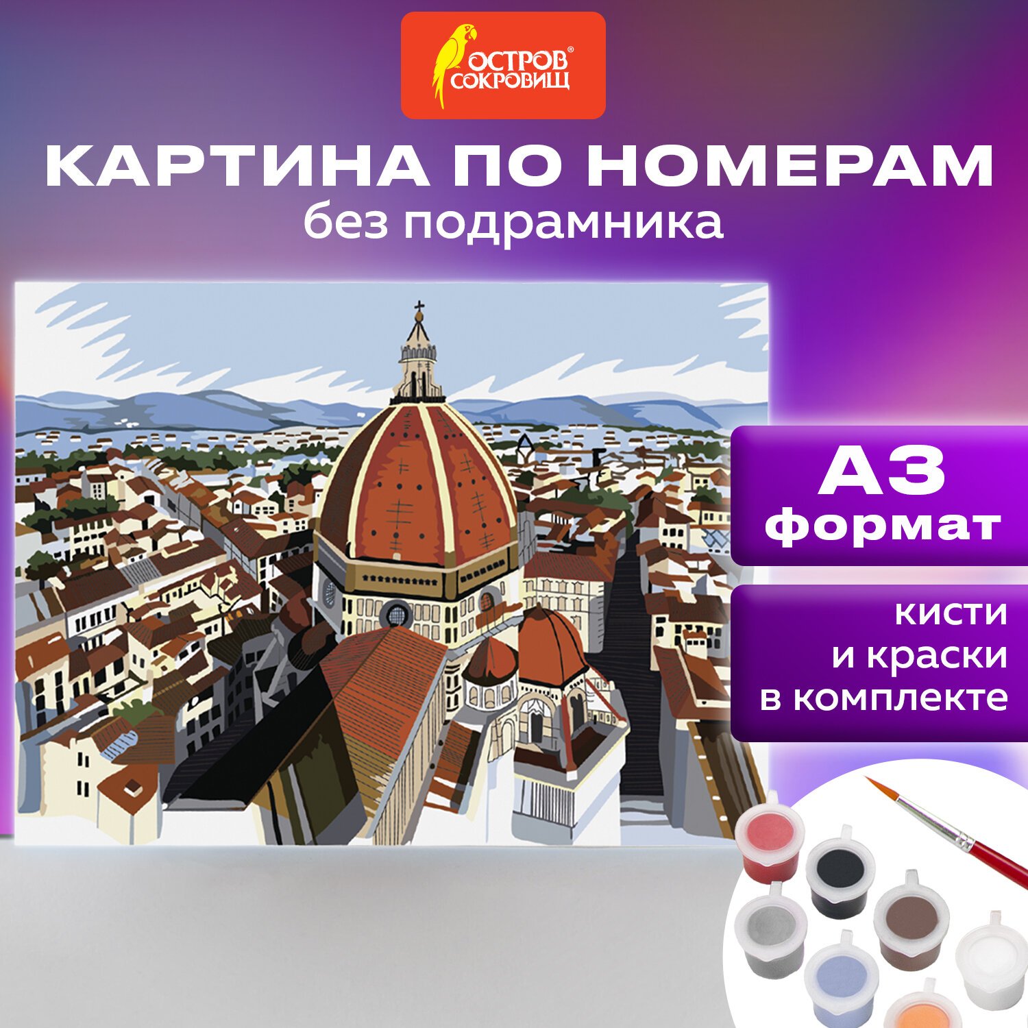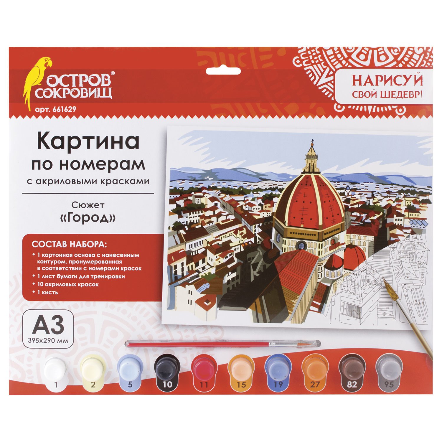 Картина по номерам А3, ОСТРОВ СОКРОВИЩ "ГОРОД", С АКРИЛОВЫМИ КРАСКАМИ, картон, кисть, 661629