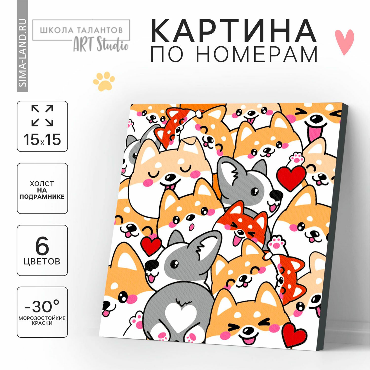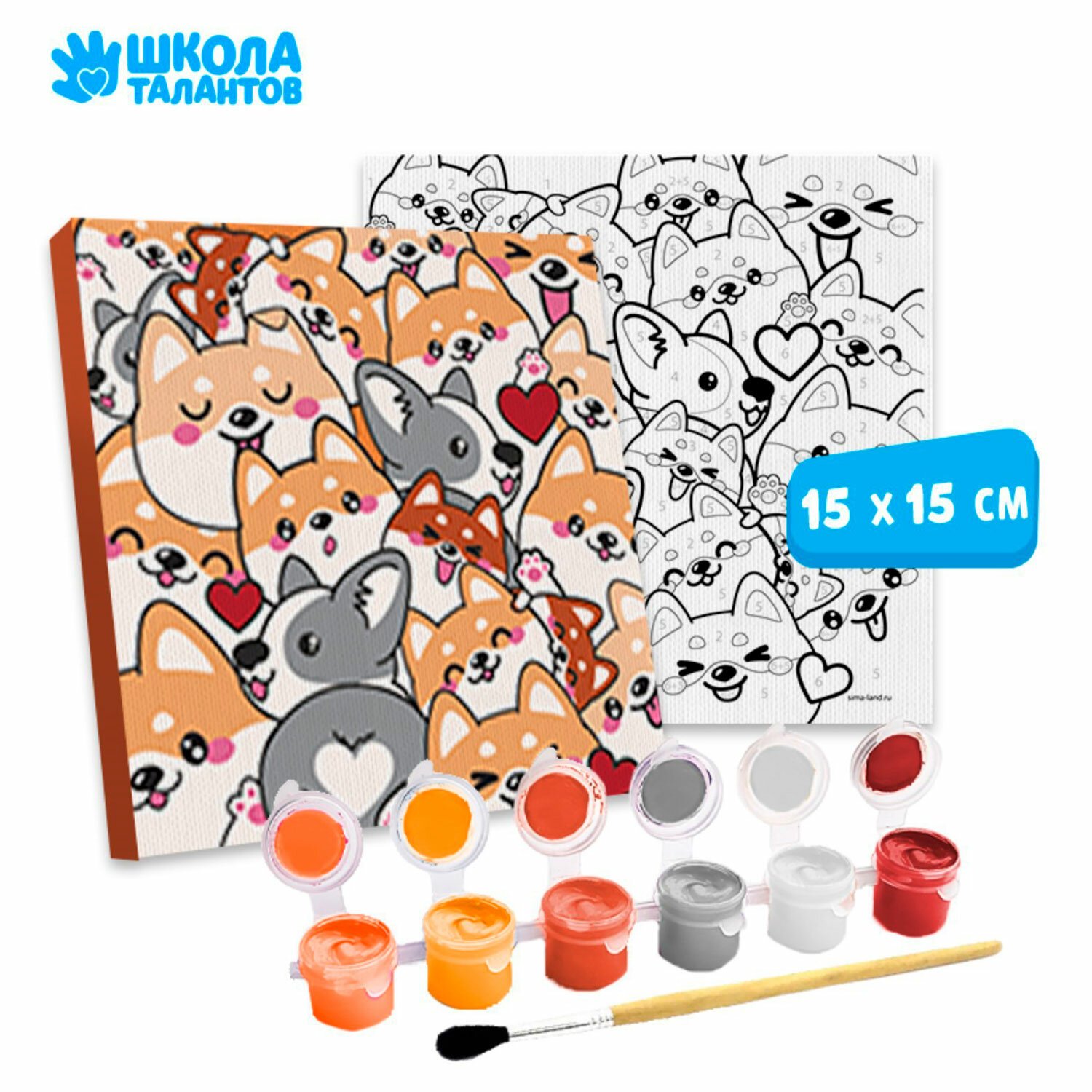 Картина по номерам "Корги", размер 15x15 см, на холсте, акриловые краски, кисти, 7370539