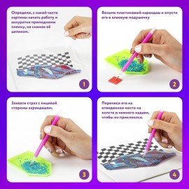 Техника алмазной мозаики проста в исполнении и не требует владения никакими специальными навыками. Все необходимые для работы материалы и инструменты входят в набор, с подробной инструкцией можно ознакомиться на упаковке.