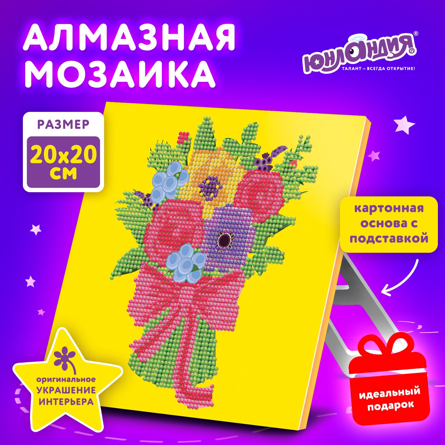 Картина стразами (алмазная мозаика) 20х20 см, ЮНЛАНДИЯ "Букет для мамы", картон, 662432