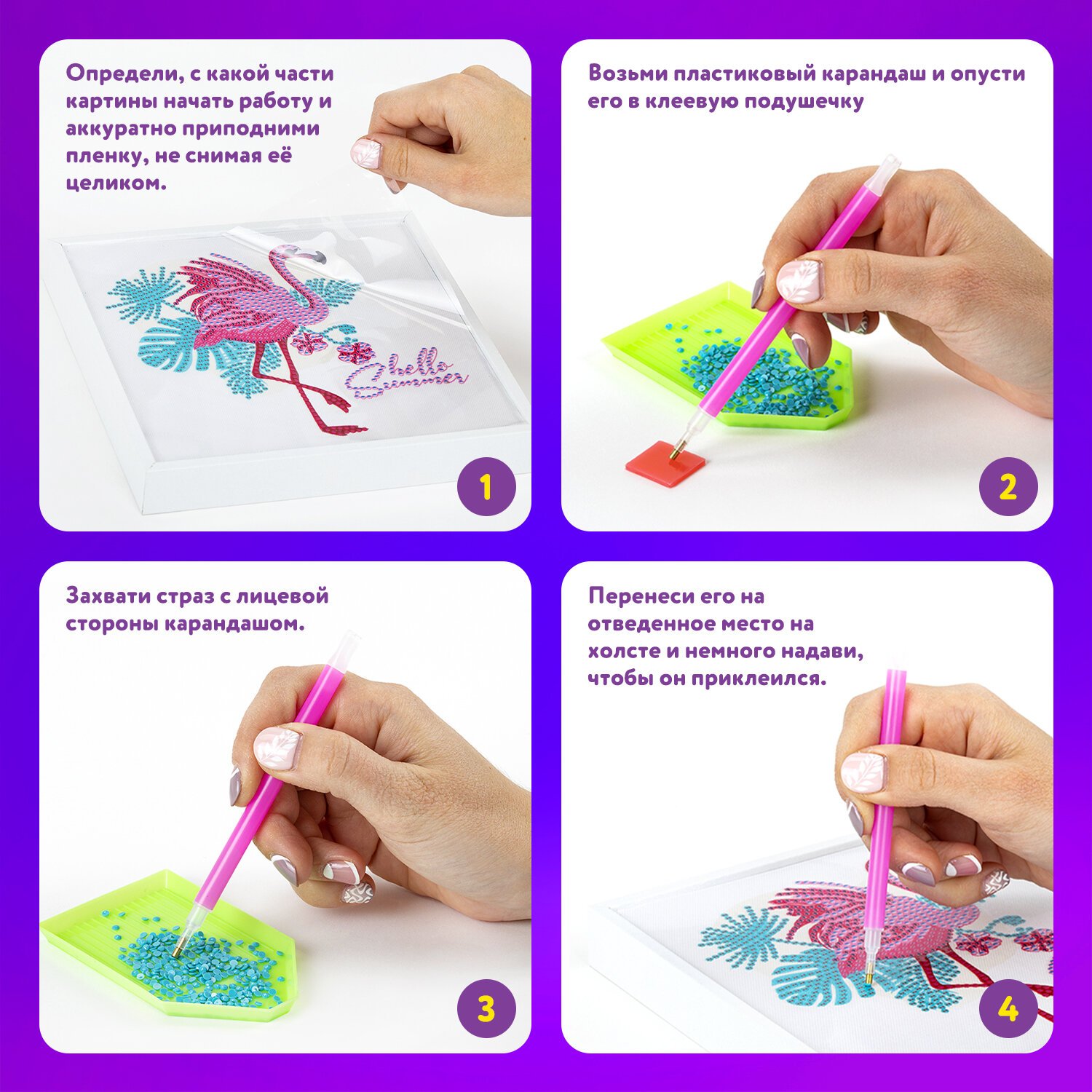 - набор страз различных цветов, пронумерованных в соответствии со схемой;