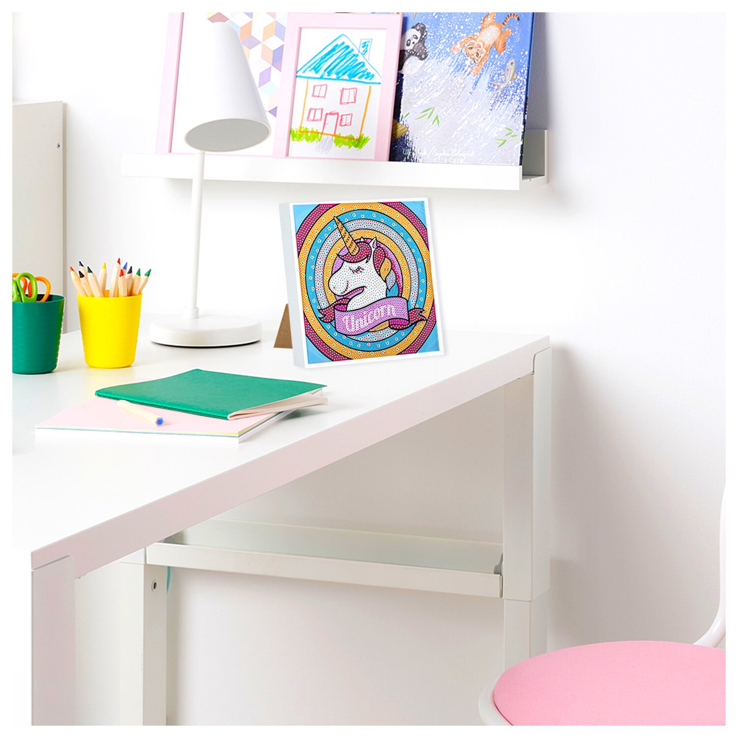 Картина стразами (алмазная мозаика) 20х20 см, ЮНЛАНДИЯ "Единорог", в деревянной рамке, 662436