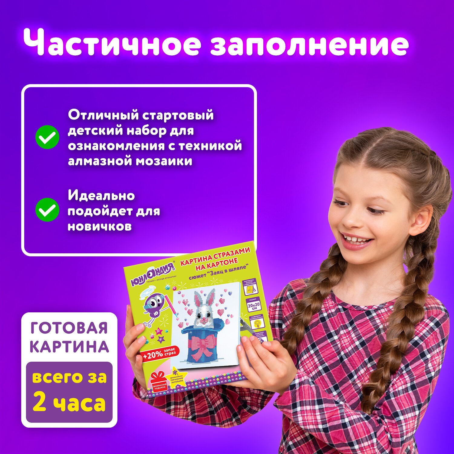 Картина стразами (алмазная мозаика) 20х20 см, ЮНЛАНДИЯ "Заяц в шляпе", картон, 662435