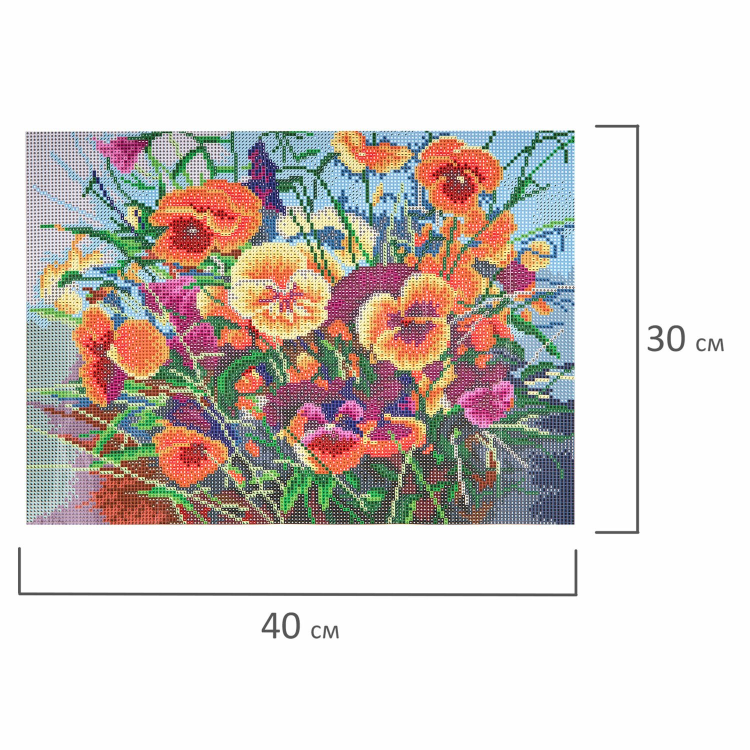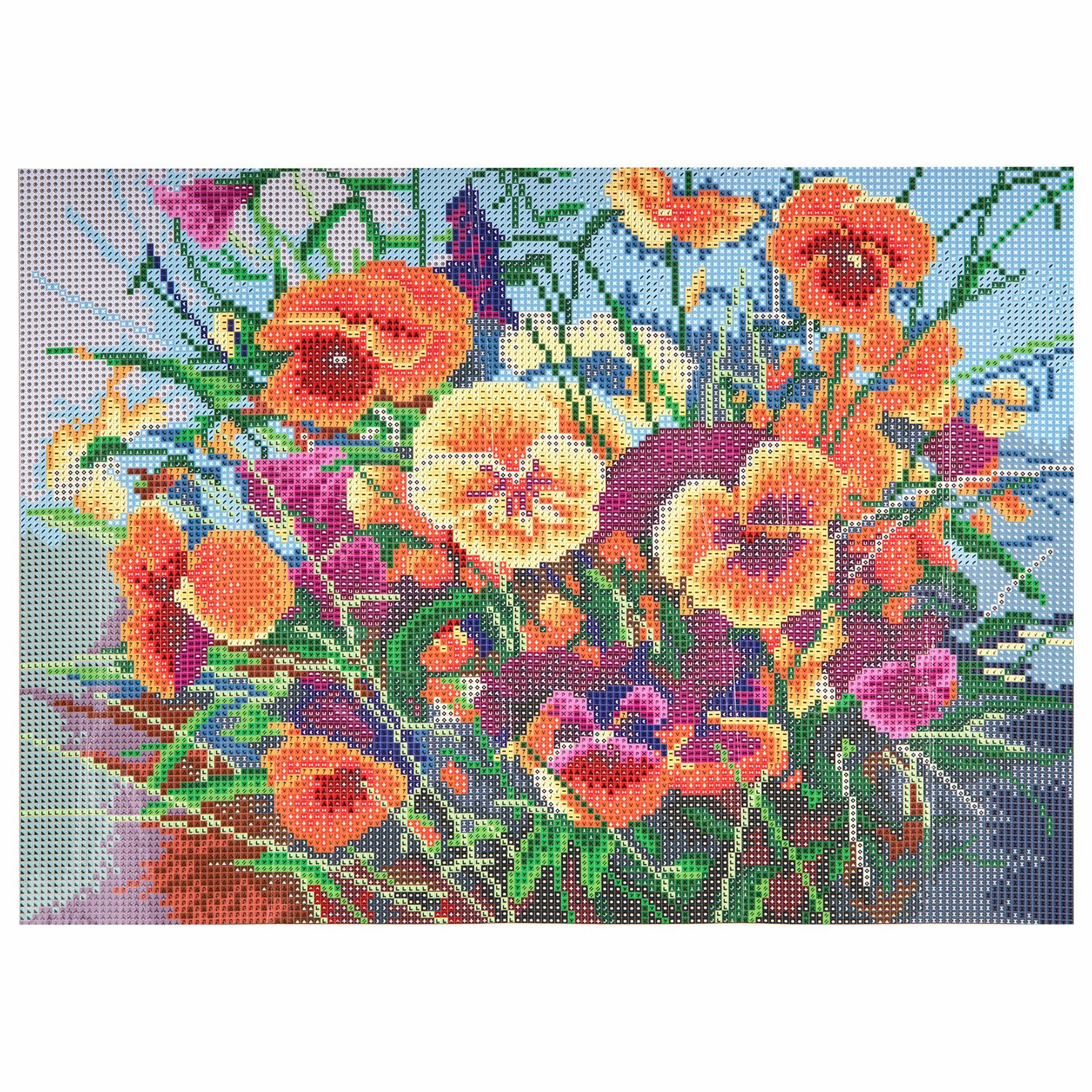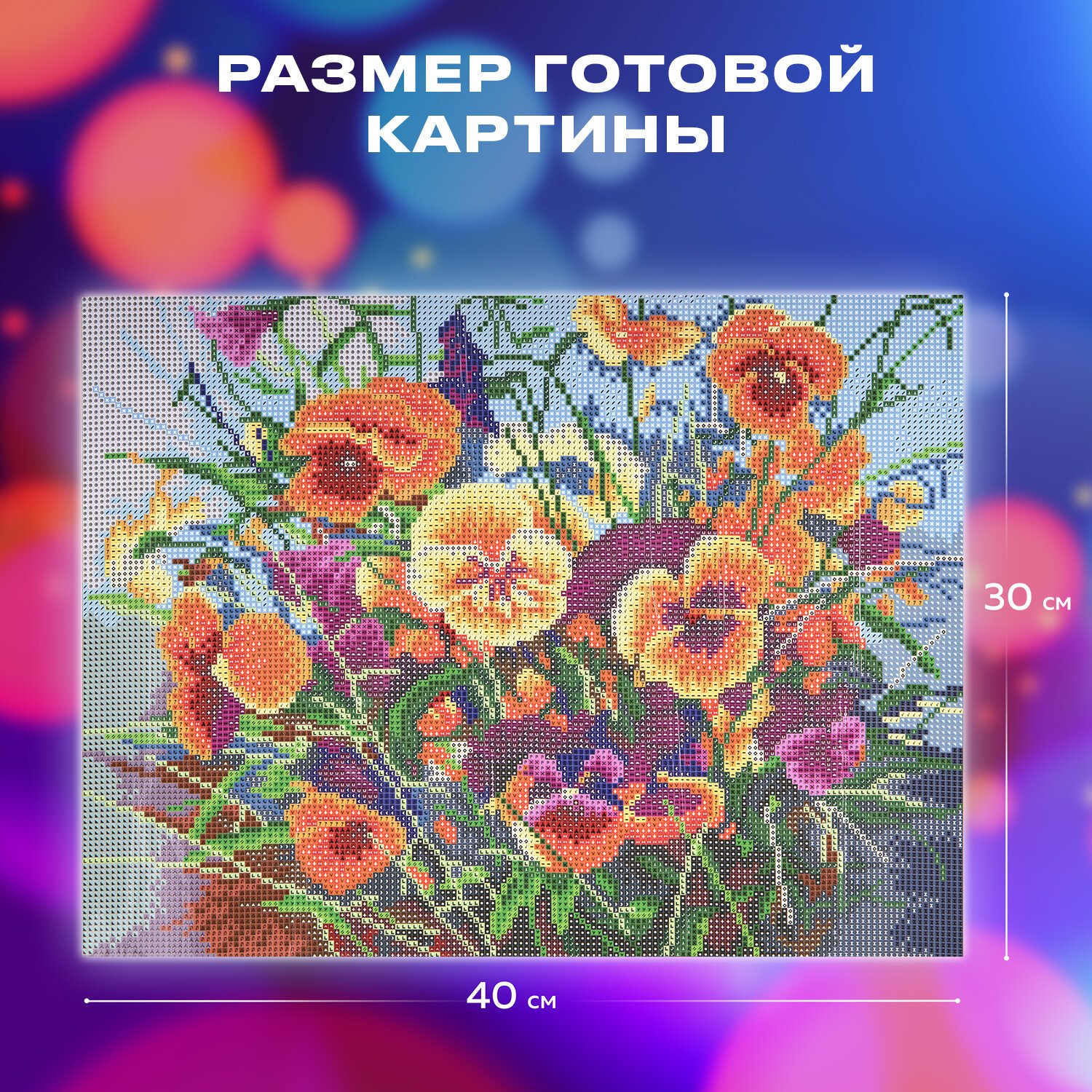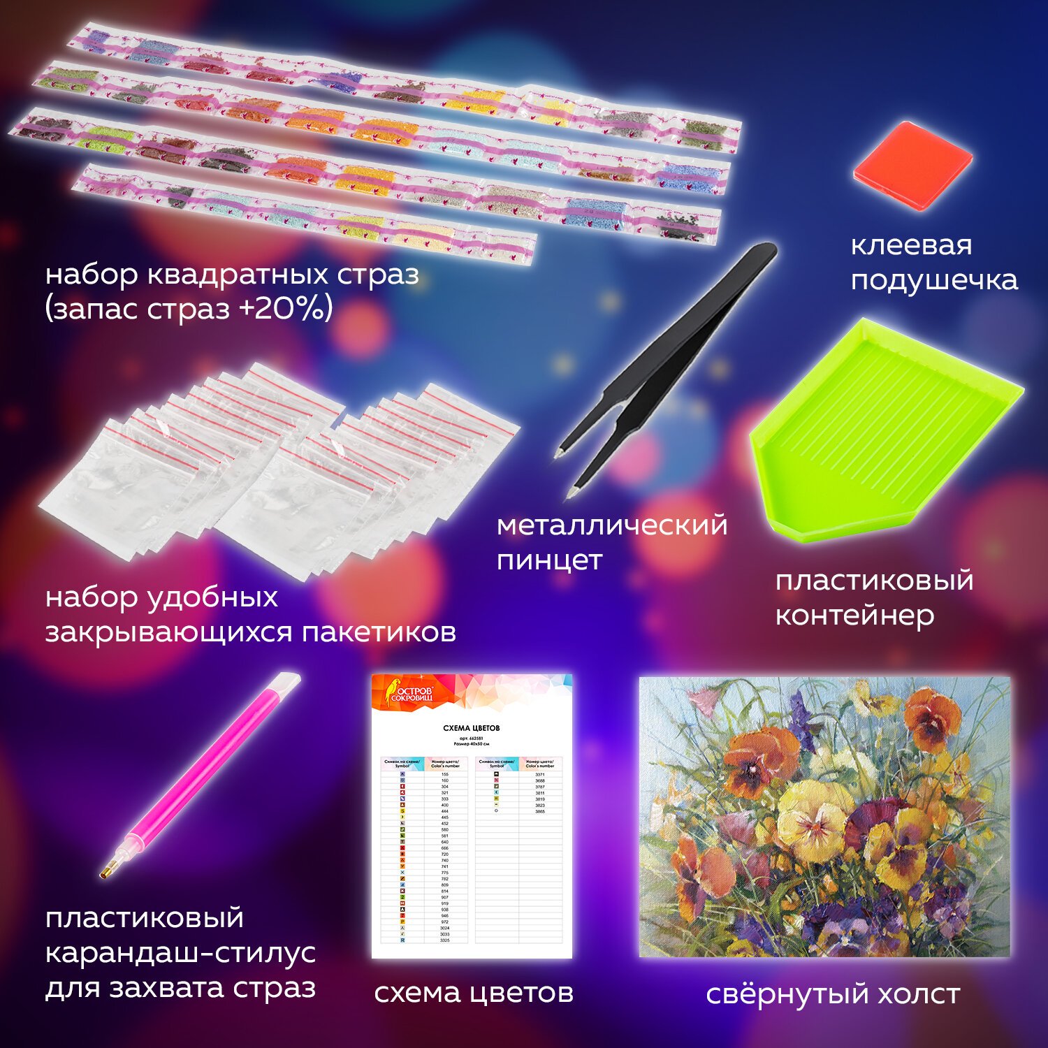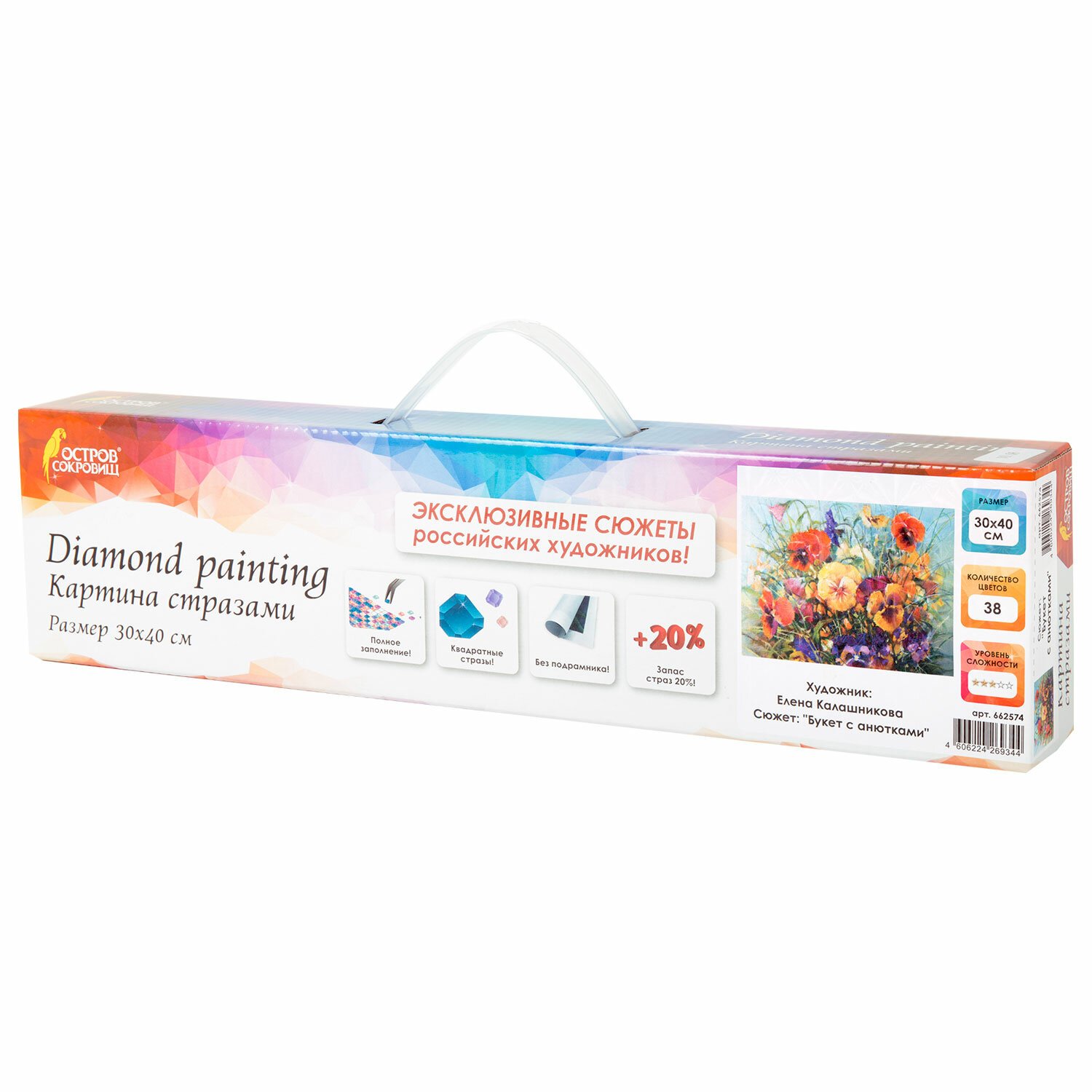 Картина стразами (алмазная мозаика) 30х40 см, ОСТРОВ СОКРОВИЩ "Букет с анютками", без подрамника, 662574