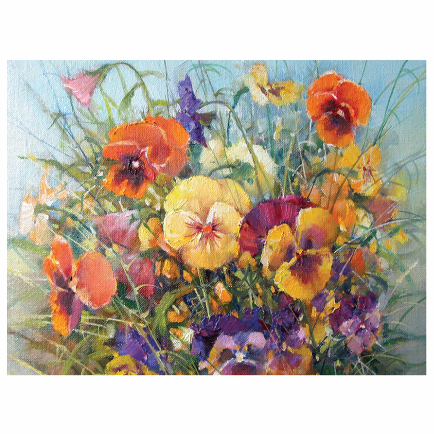 Картина стразами "Букет с анютками" представляет собой эксклюзивный сюжет по картине российского художника Калашниковой Е. В. и включает в себя: