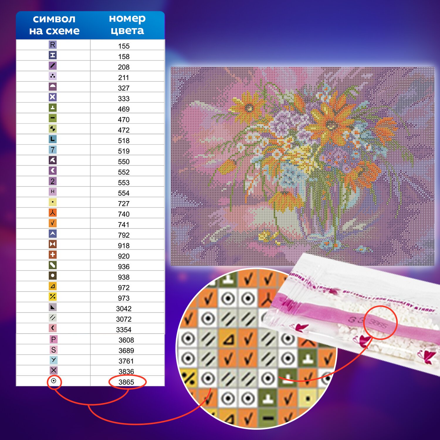 Картина стразами "Букет в вазе" основывается на эксклюзивном сюжете "Настроение" от российского художника Неприятель Ю. А. и включает в себя: