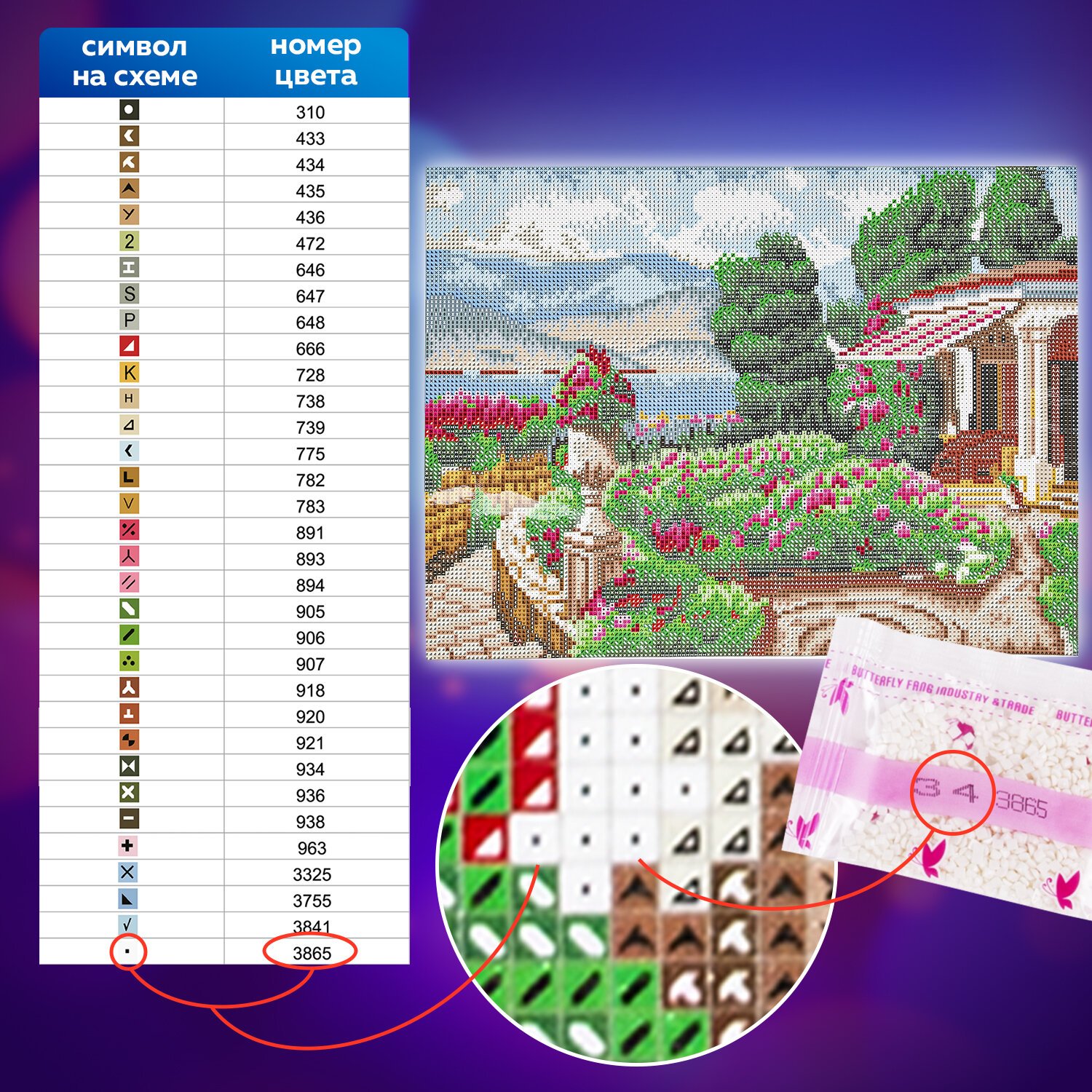 - набор квадратных страз разных цветов, пронумерованных в соответствии со схемой;
