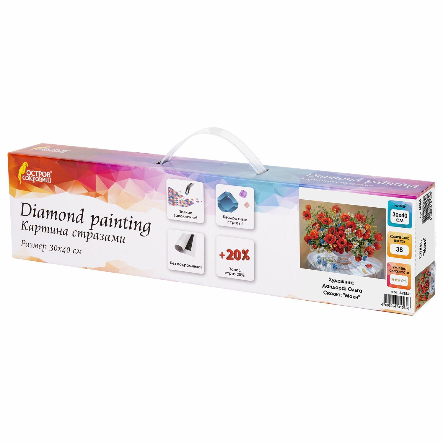 Картина стразами (алмазная мозаика), 30х40 см, ОСТРОВ СОКРОВИЩ "Маки", без подрамника, 663861