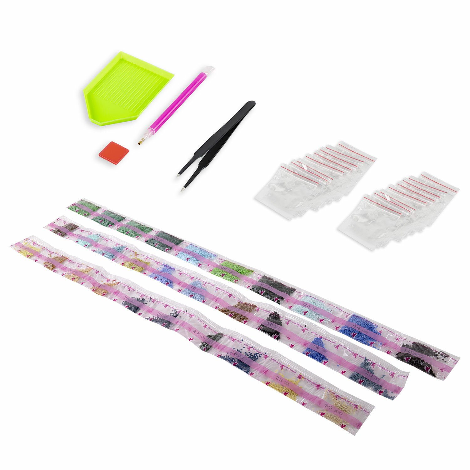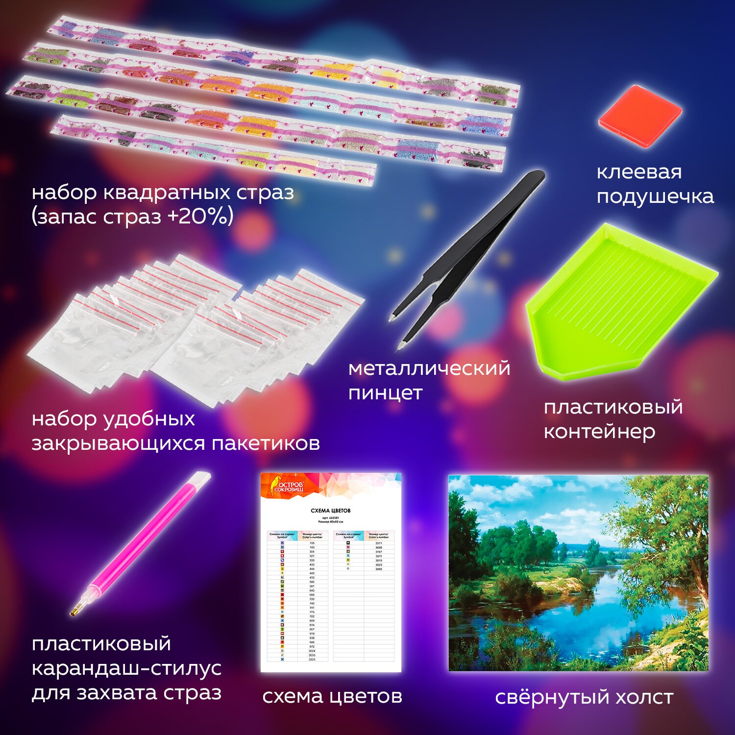 - набор квадратных страз разных цветов, пронумерованных в соответствии со схемой;