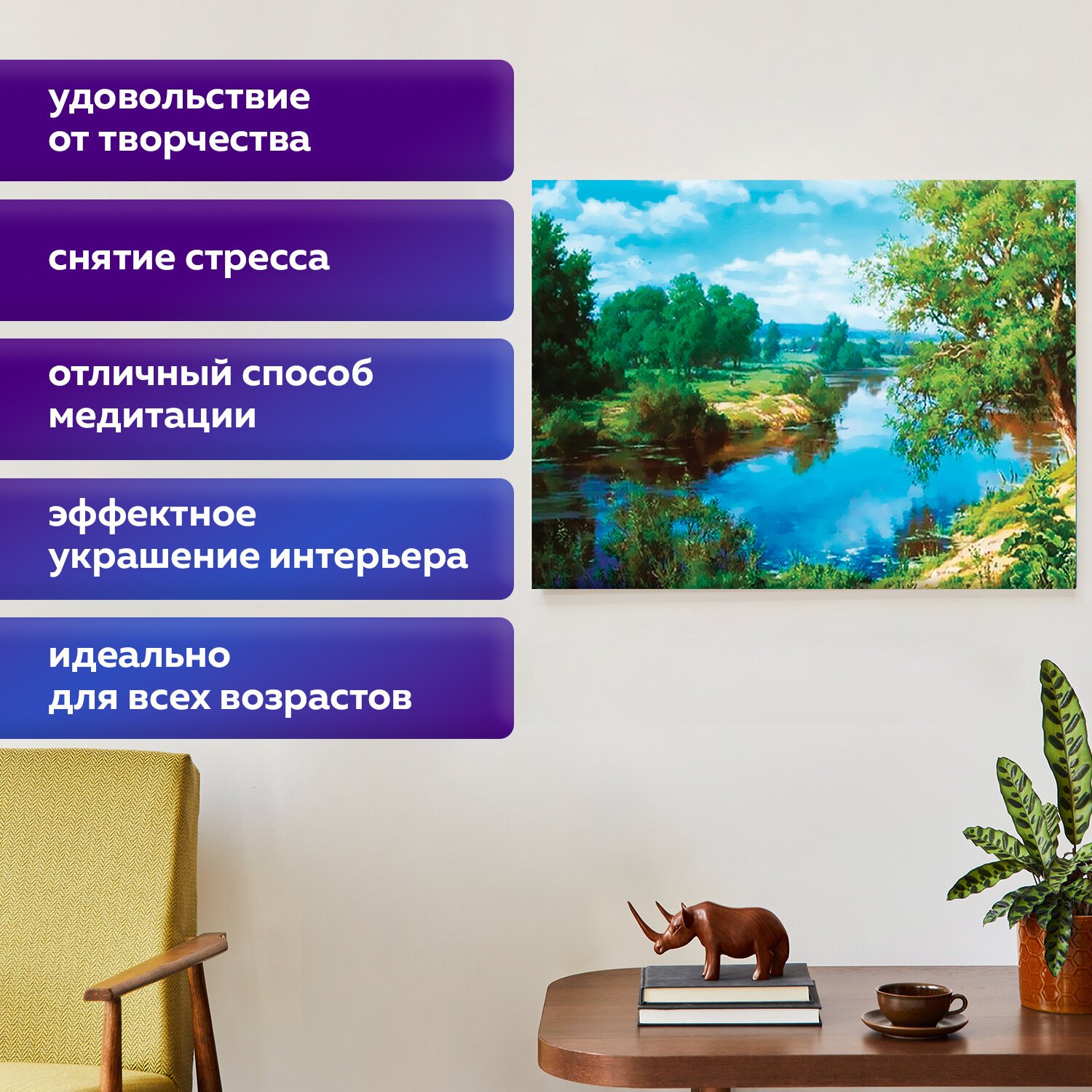 Картина стразами "На берегу реки" включает в себя: