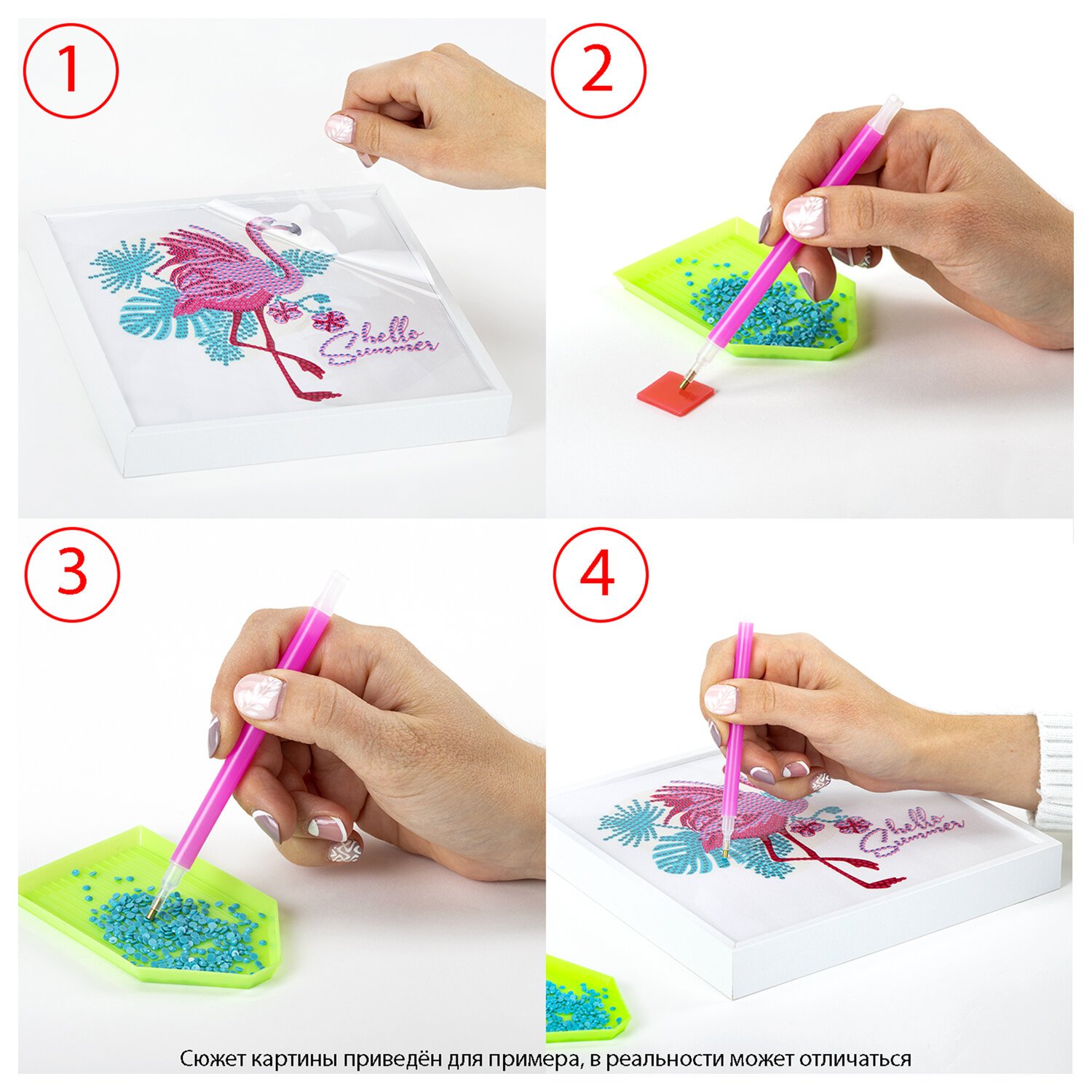 Техника алмазной мозаики проста в исполнении и не требует владения никакими специальными навыками. Все необходимые для работы материалы и инструменты входят в набор, подробная инструкция находится внутри упаковки.