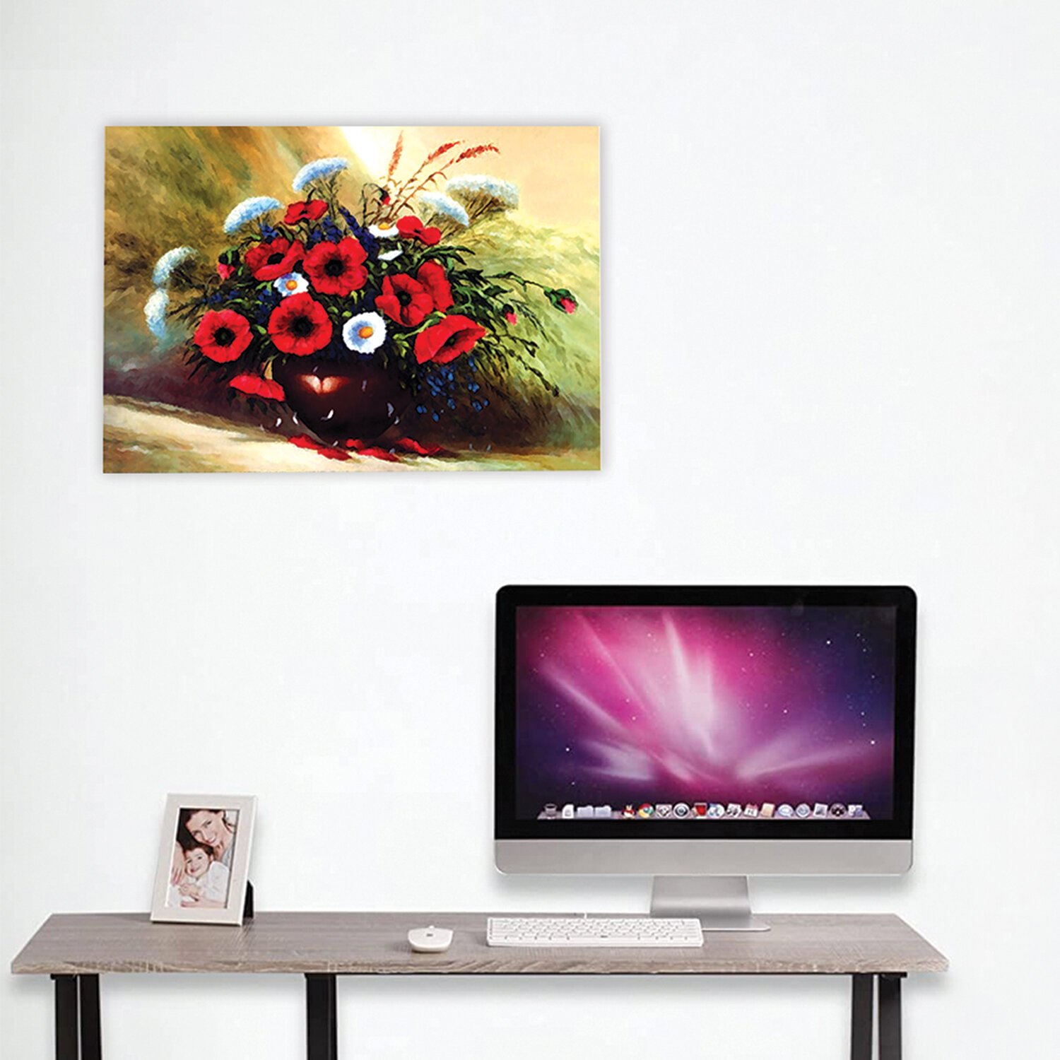 Размер готовой картины составляет 30х40 см. Картина полностью заполняется квадратными акриловыми стразами, благодаря чему готовая работа блистает и переливается на свету.