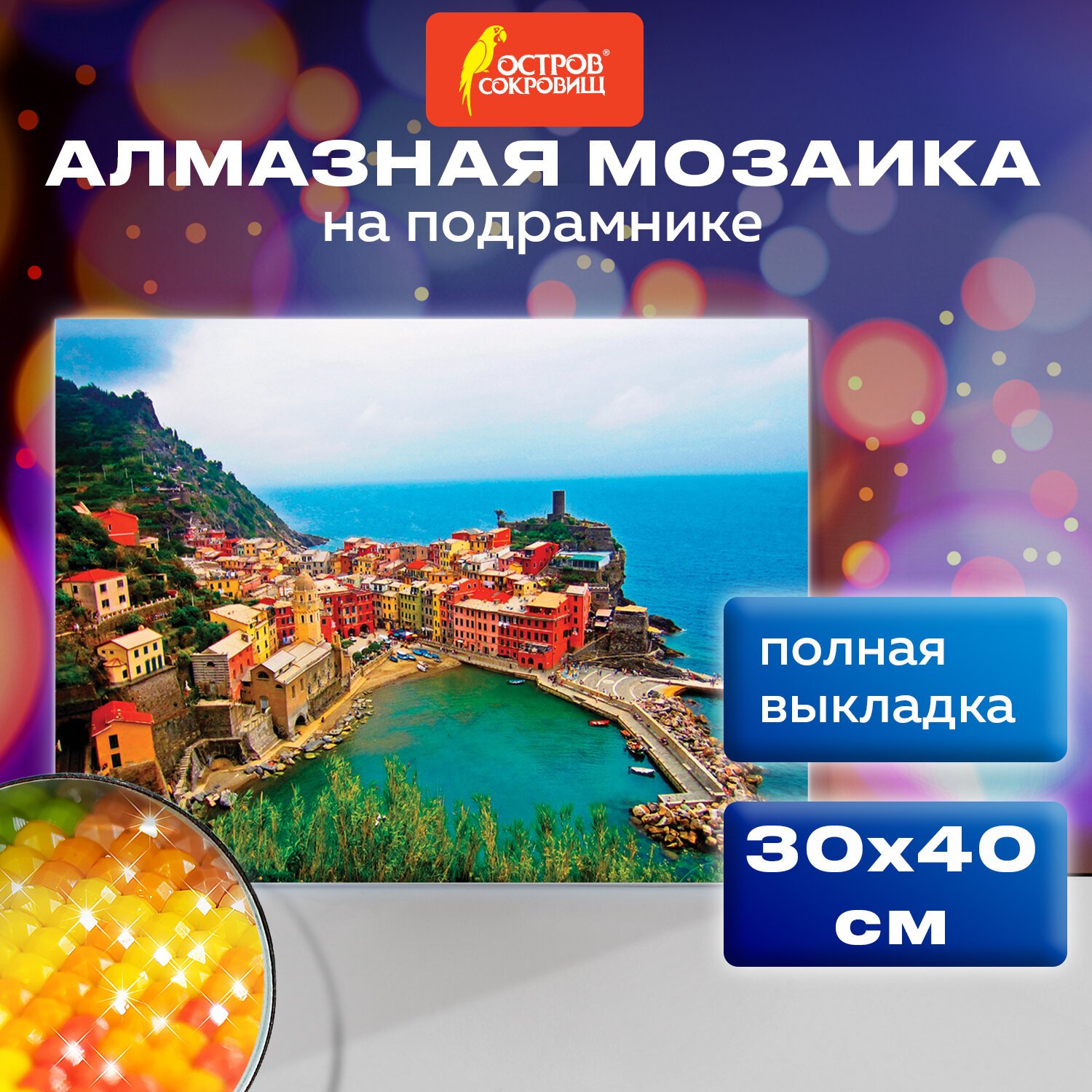 Картина стразами (алмазная мозаика) 30х40 см, ОСТРОВ СОКРОВИЩ "Прибрежный городок", на подрамнике, 662421