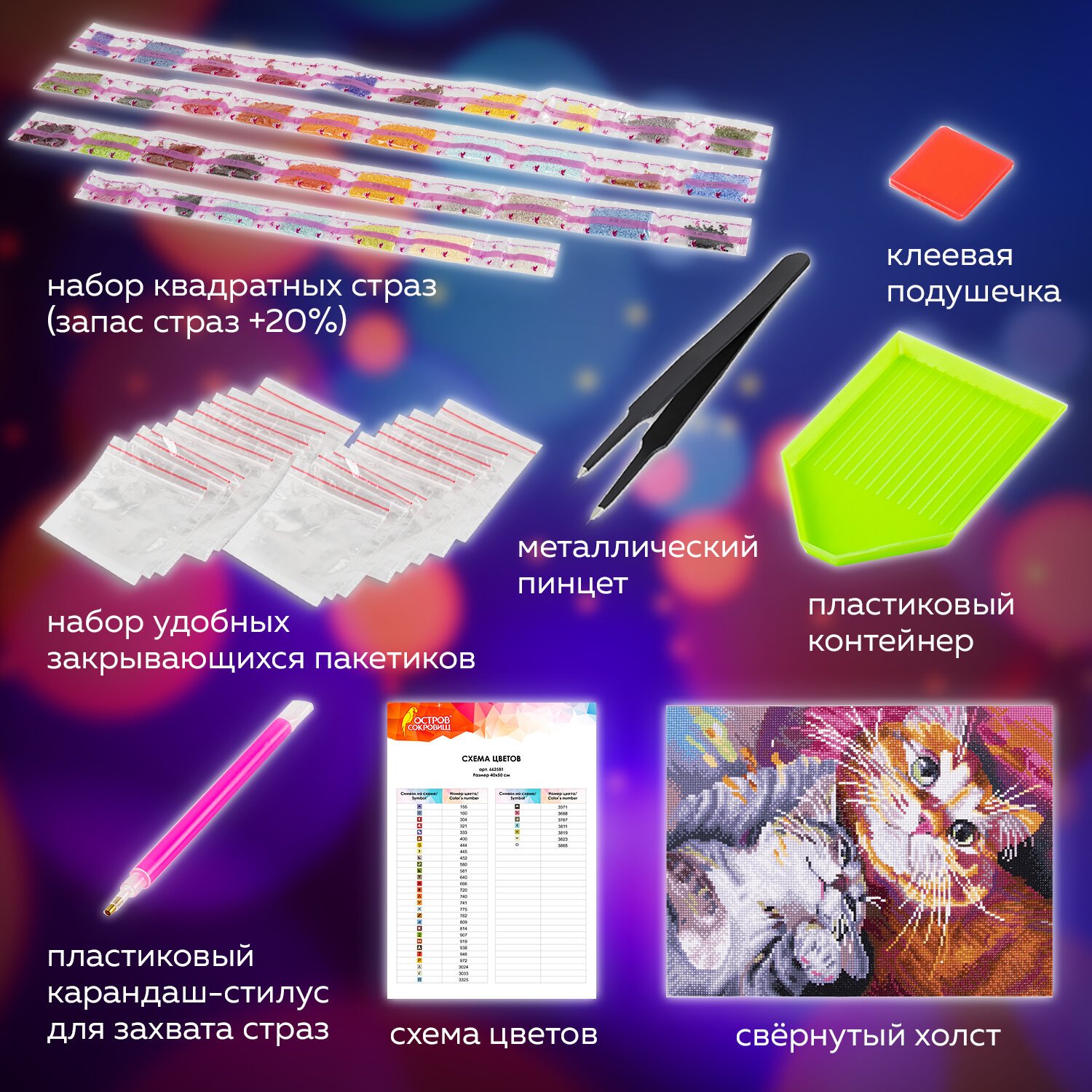 Картины стразами ОСТРОВ СОКРОВИЩ - это наборы для создания картин в технике алмазной мозаики. Холст с нанесенным изображением и клеевым слоем заполняется акриловыми стразами. В наборе содержится всё необходимое для создания шедевра своими руками.